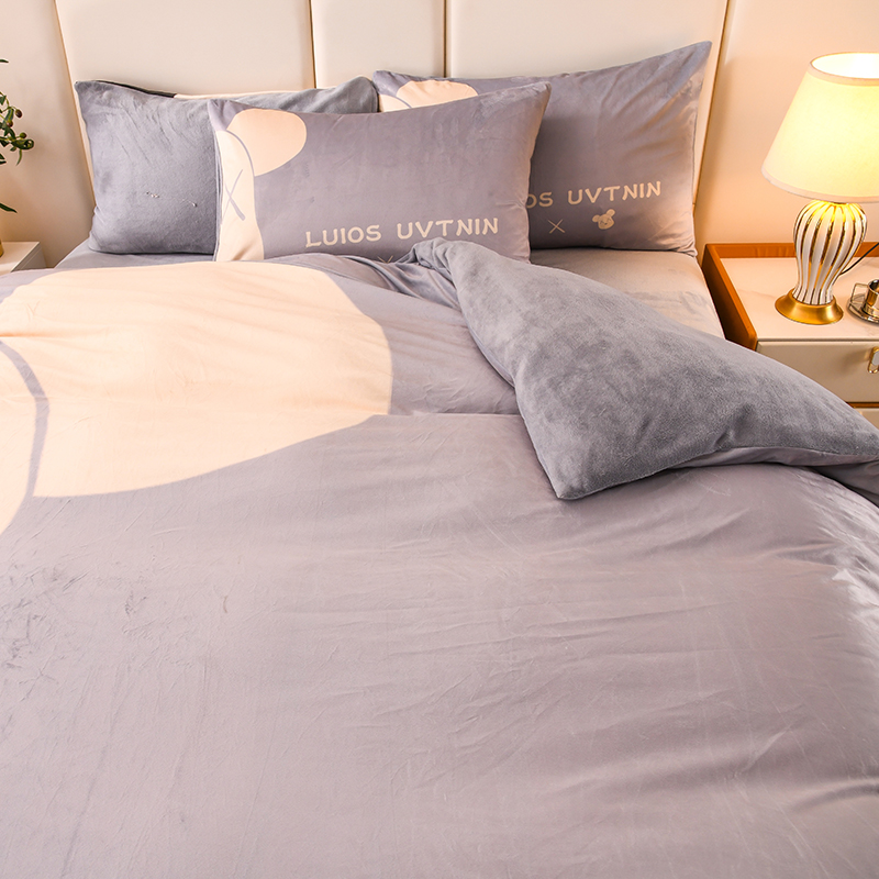 爵仕家纺 2023新款暴力熊牛奶绒系列四件套 半脸熊