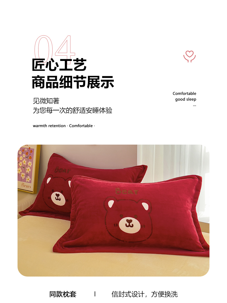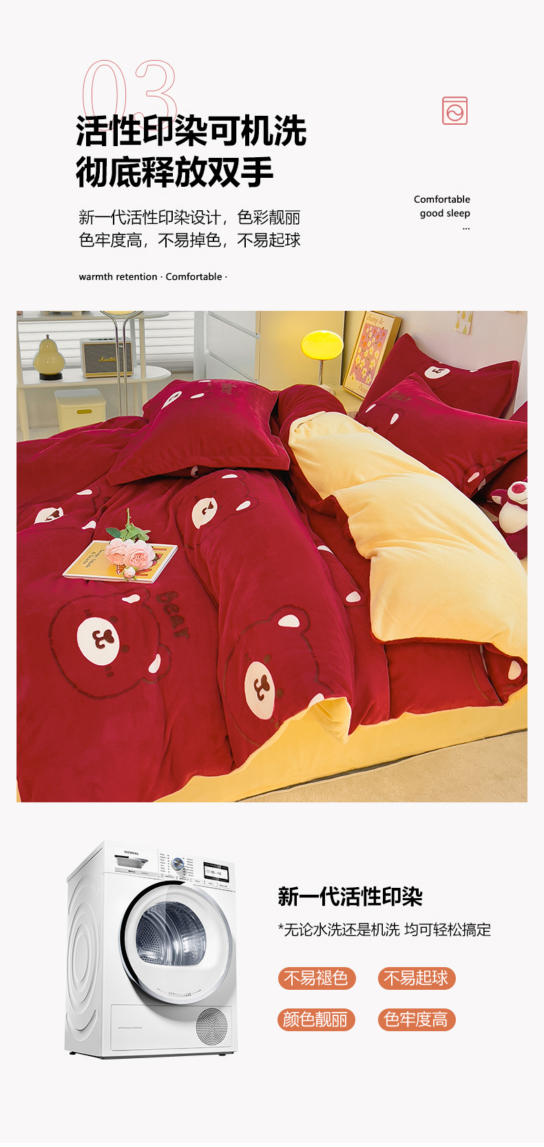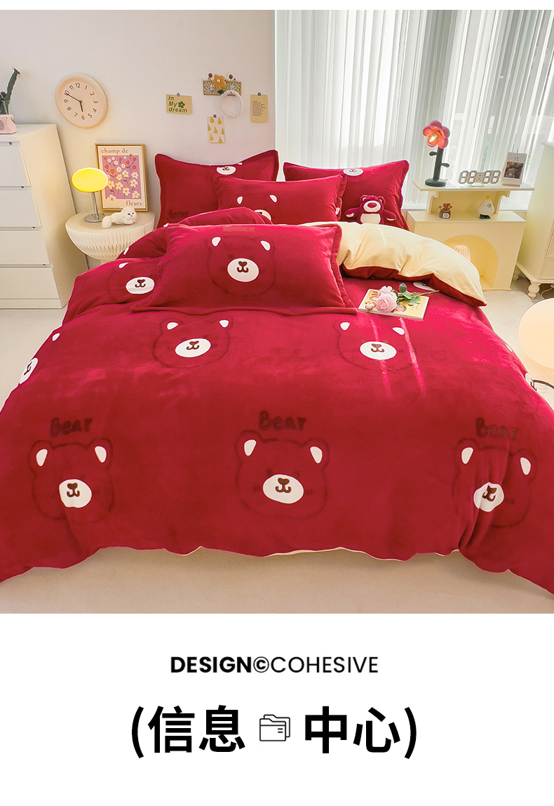商品名称:全季家居2023新款小清新A类高克重加厚印花牛奶绒四件套 可爱熊
