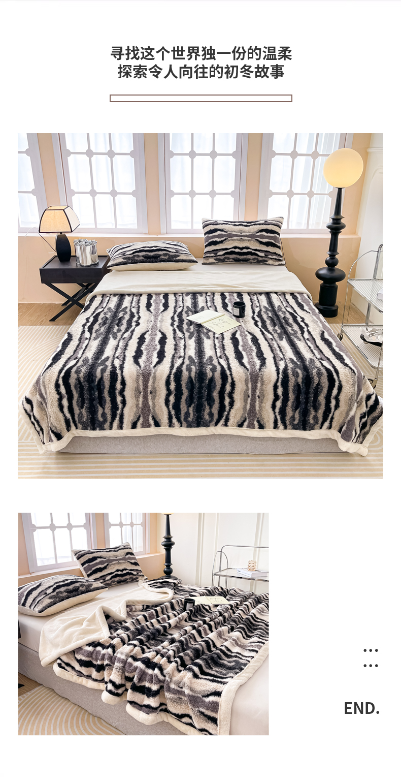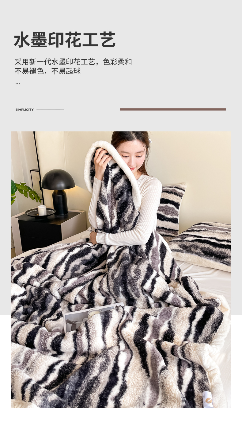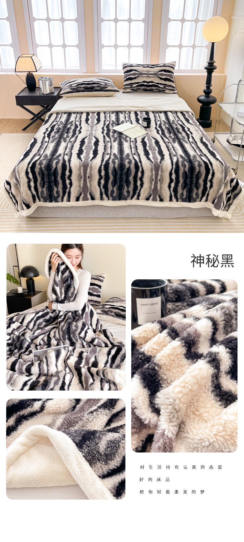 商品名称:席世家2023新款水墨印花兔毛毯子 神秘黑