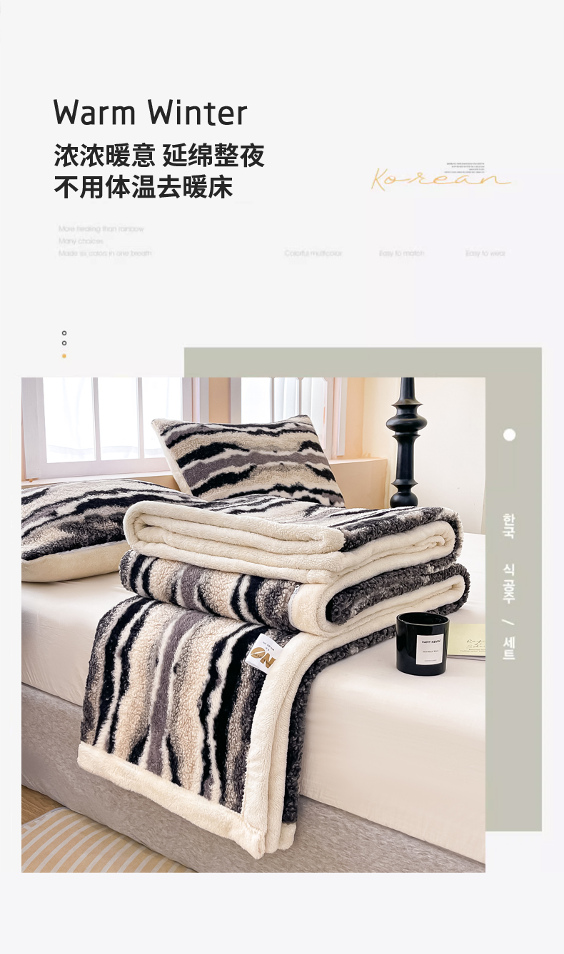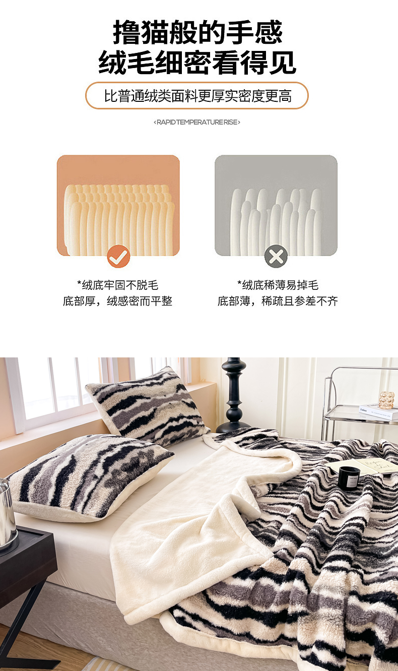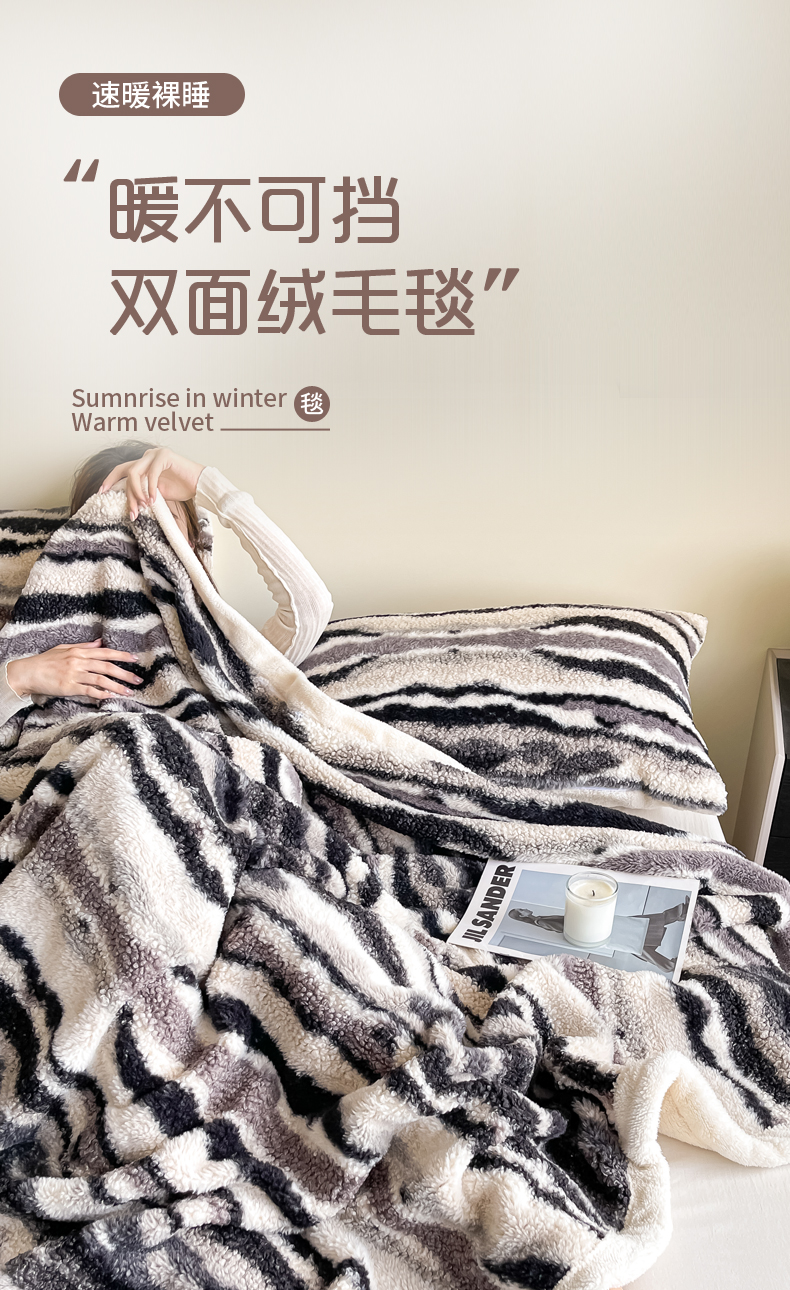 商品名称:席世家2023新款水墨印花兔毛毯子 神秘黑