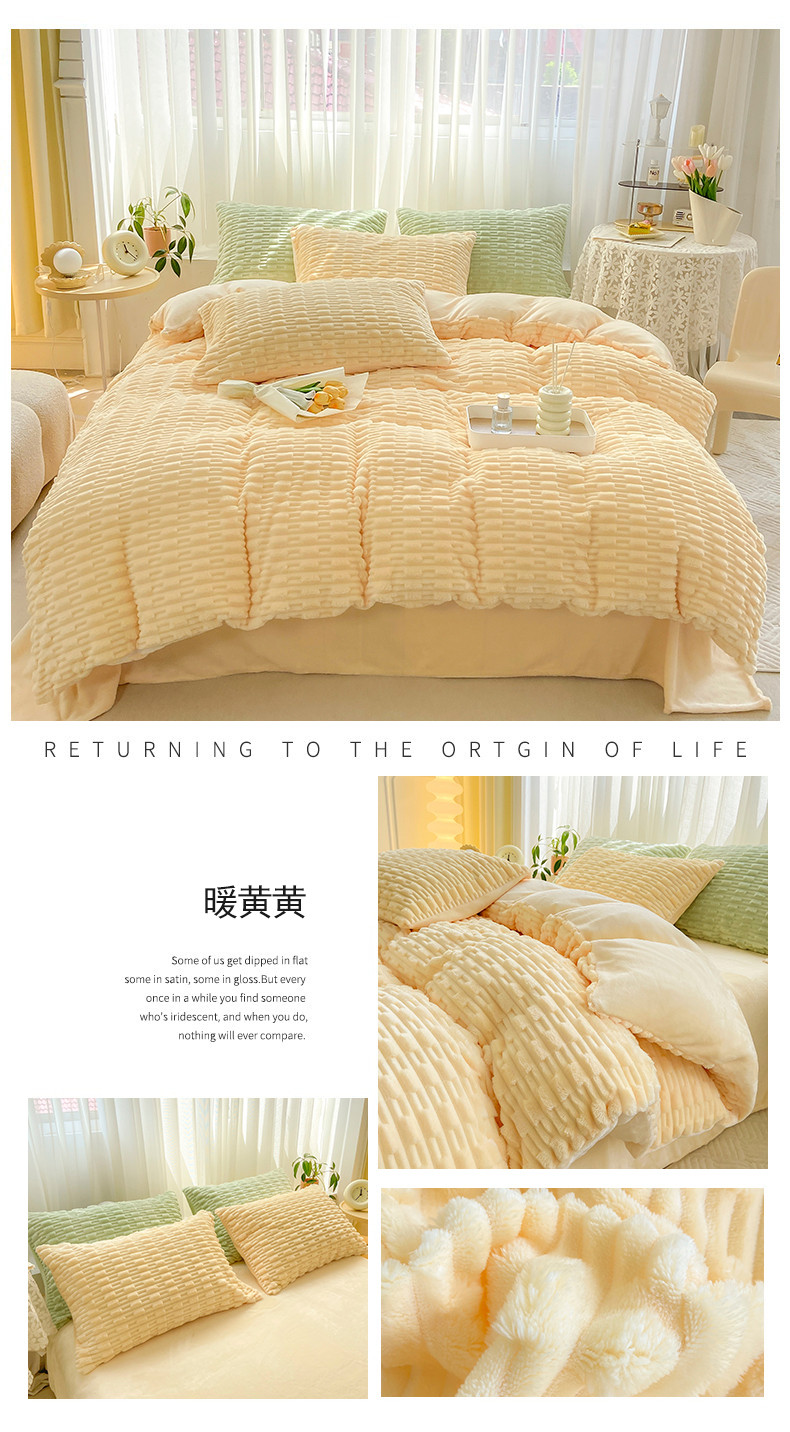 (总)源舍家纺 2025新款色织拼色编织提花轻奢牛奶绒四件套(场景二),织锦-暖阳,织锦-白露,织锦-粉漾,织锦-灰调,织锦-咖韵,织锦-蓝谧,织锦-青雾,织锦-紫菱