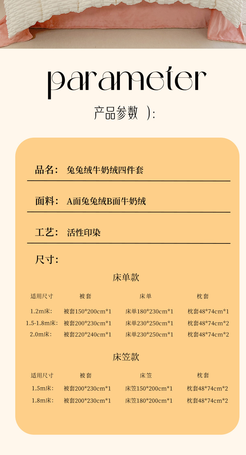 商品名称:(总)源舍家纺 2023新款250克糖果色兔兔绒牛奶绒四件套