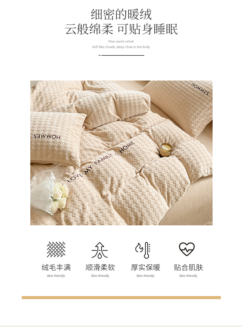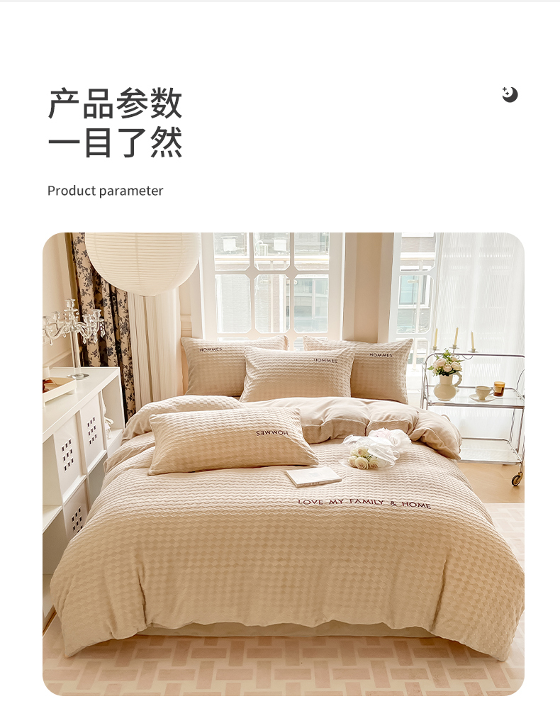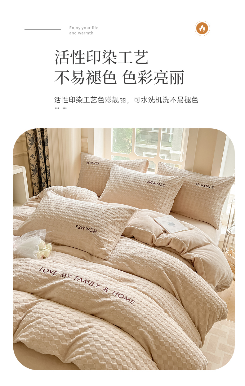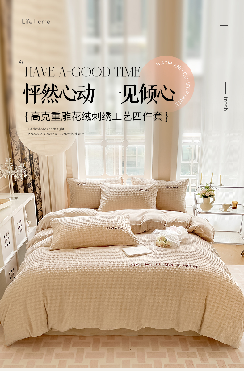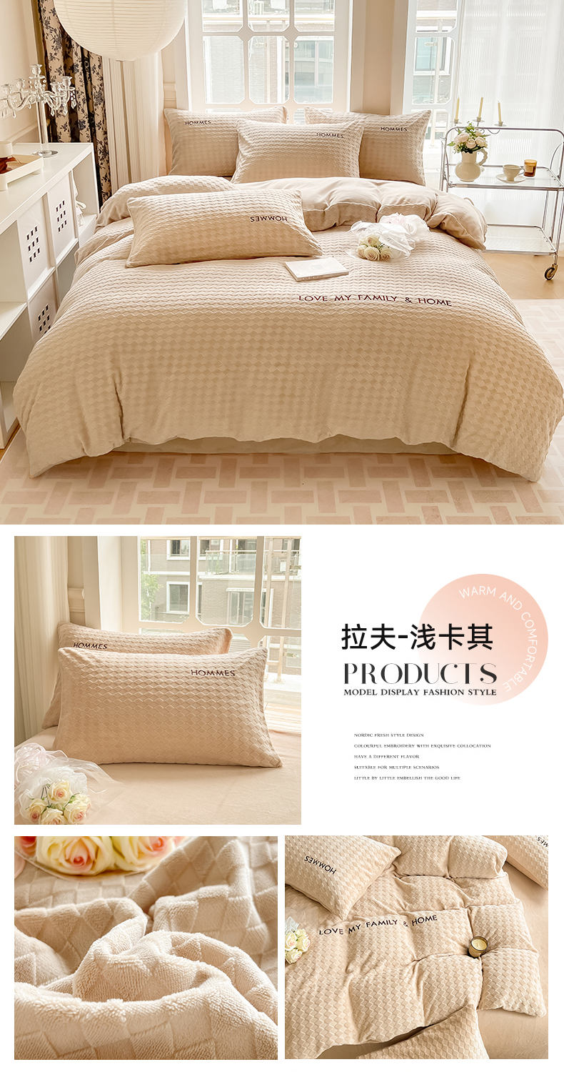 当前位置: 91家纺网 > 商品网购 > 床品套件 > 四件套 > 雕花绒四件套 > 慕尚家纺 2025高克重雕花绒刺绣工艺四件套 拉夫-浅卡其