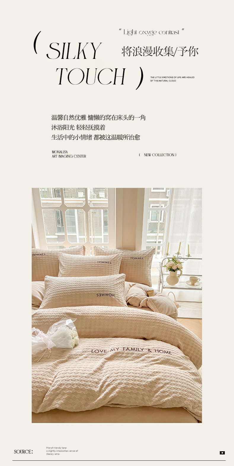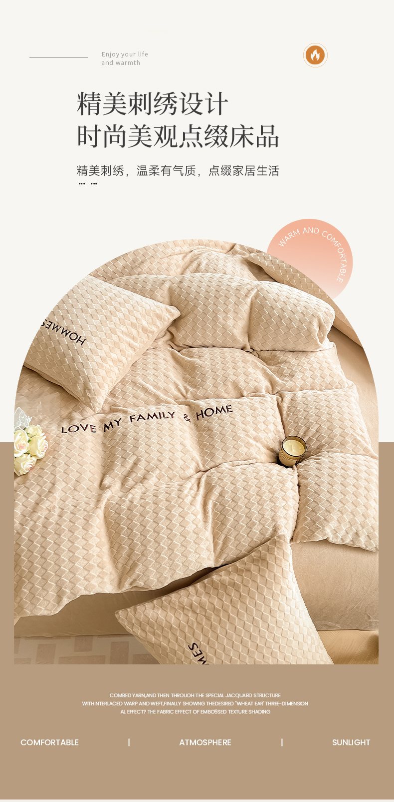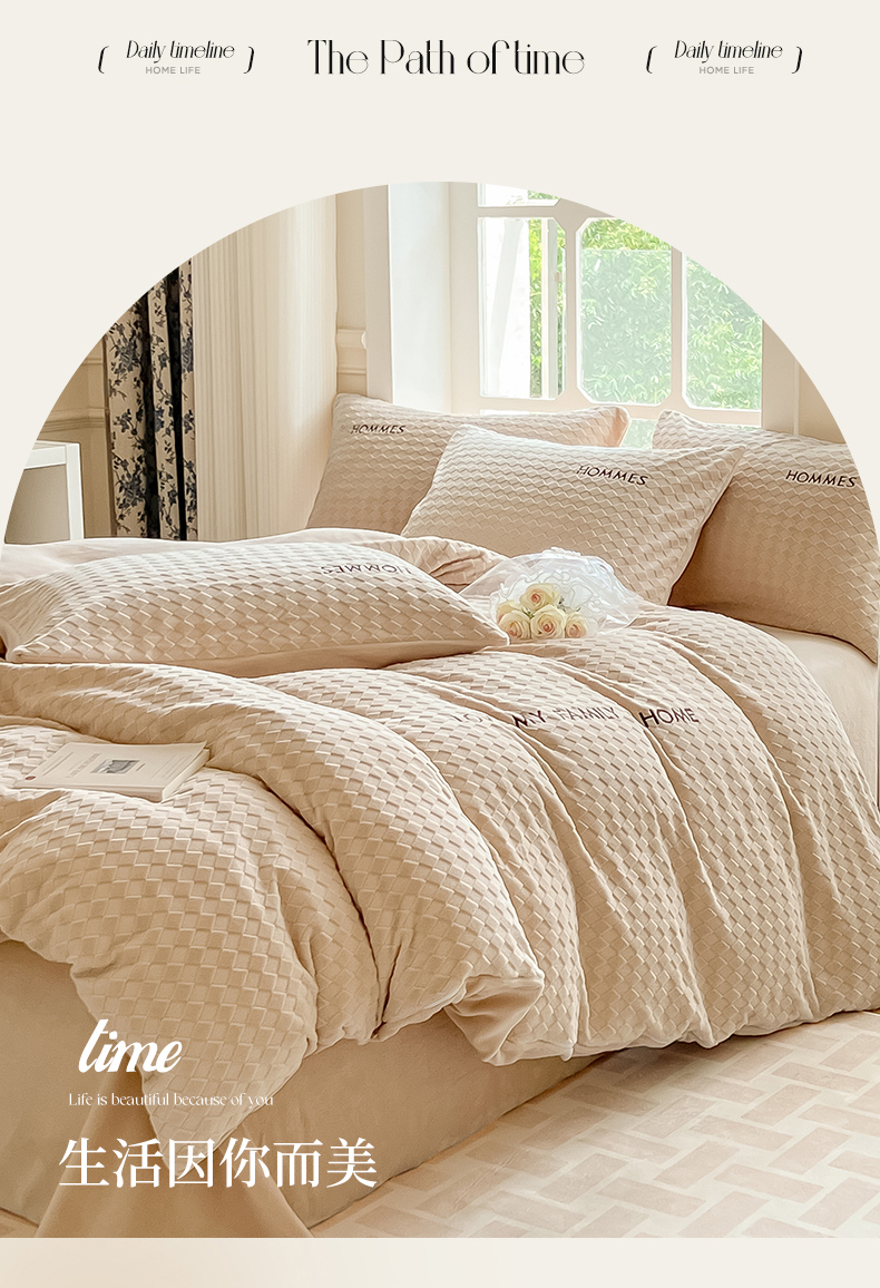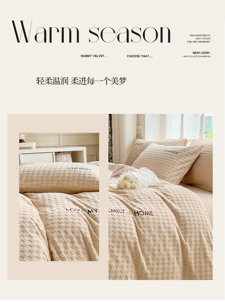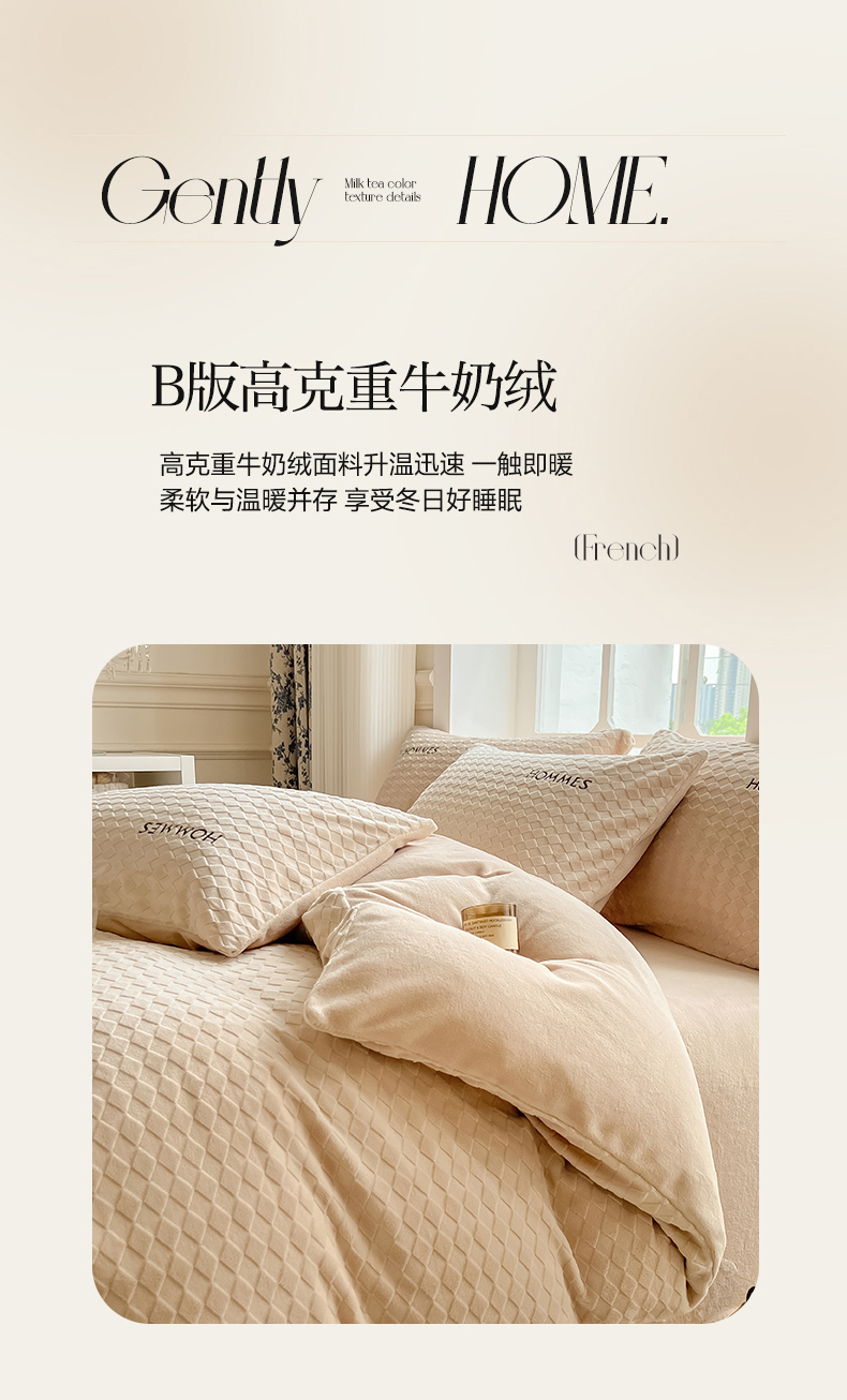 当前位置: 91家纺网 > 商品网购 > 床品套件 > 四件套 > 雕花绒四件套 > 慕尚家纺 2025高克重雕花绒刺绣工艺四件套 拉夫-浅卡其