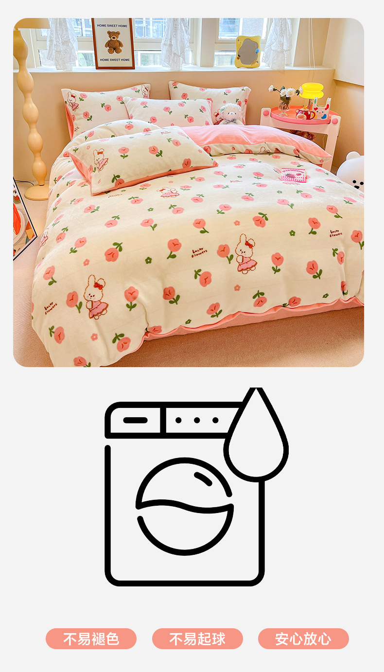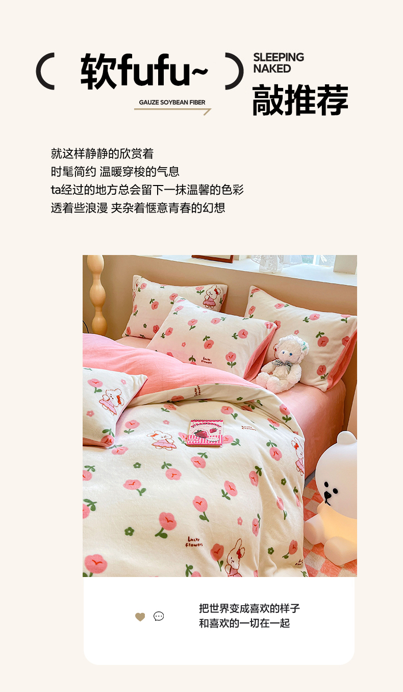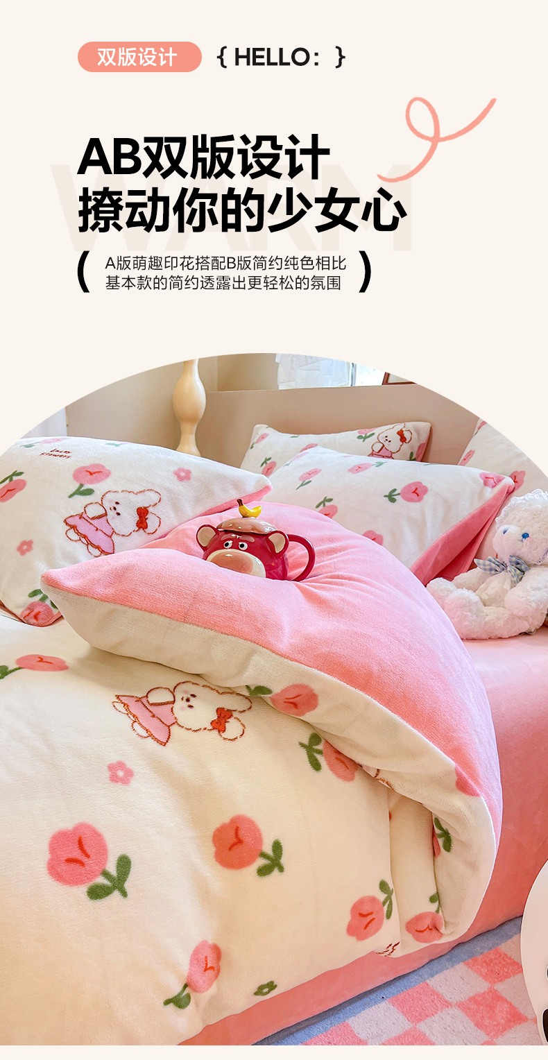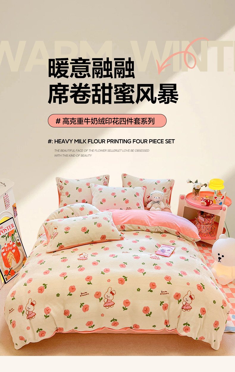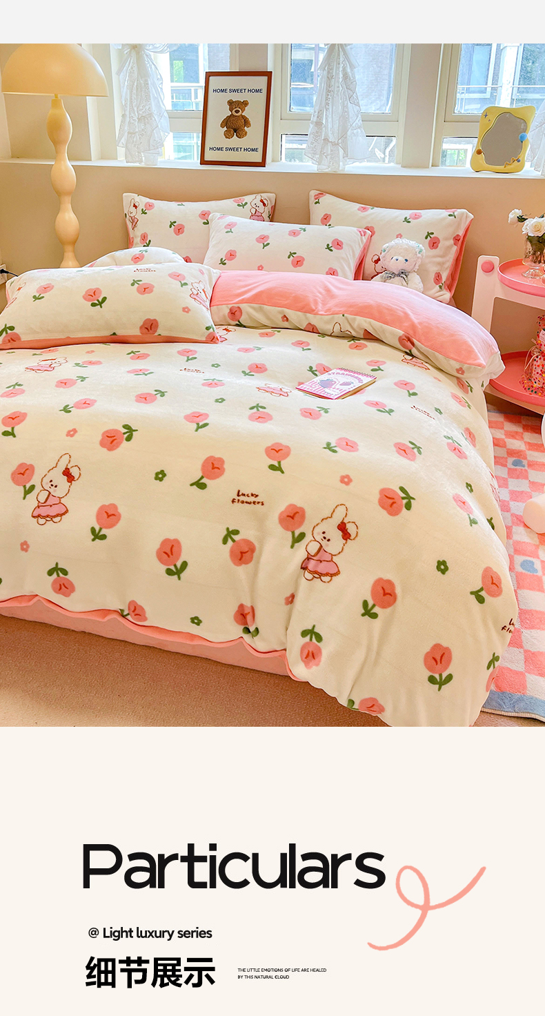 商品名称:沐辰 2023新款牛奶绒印花四件套 快乐小兔