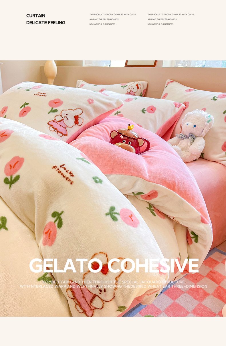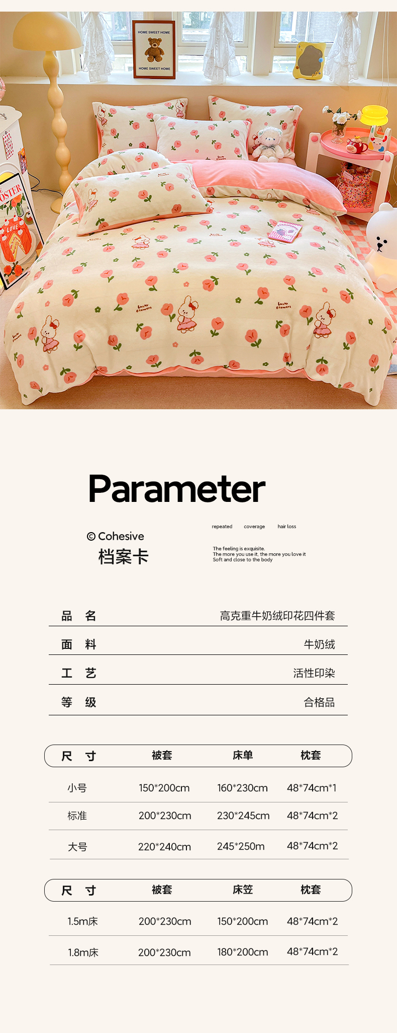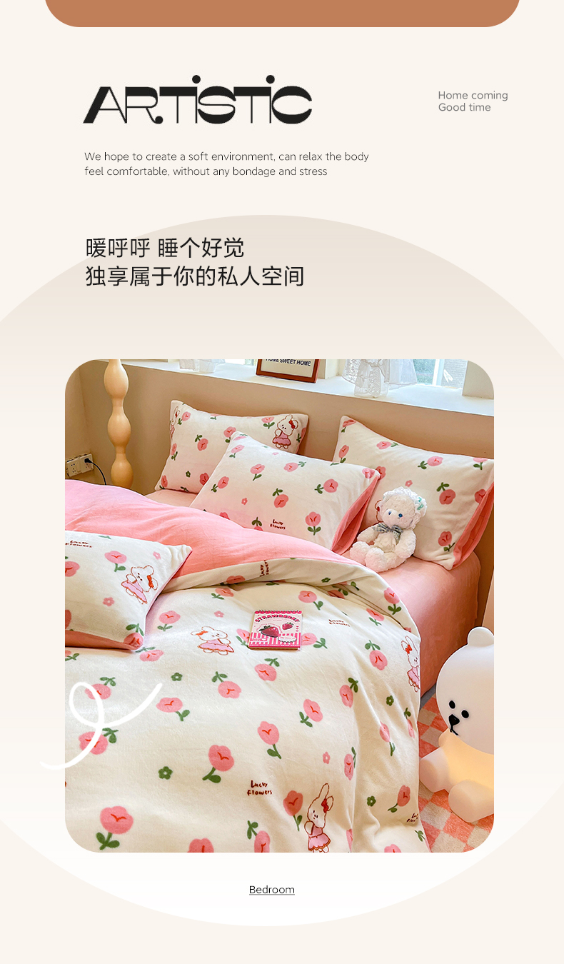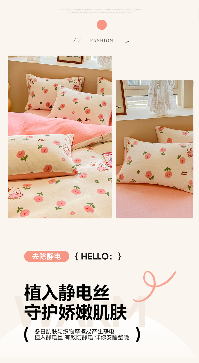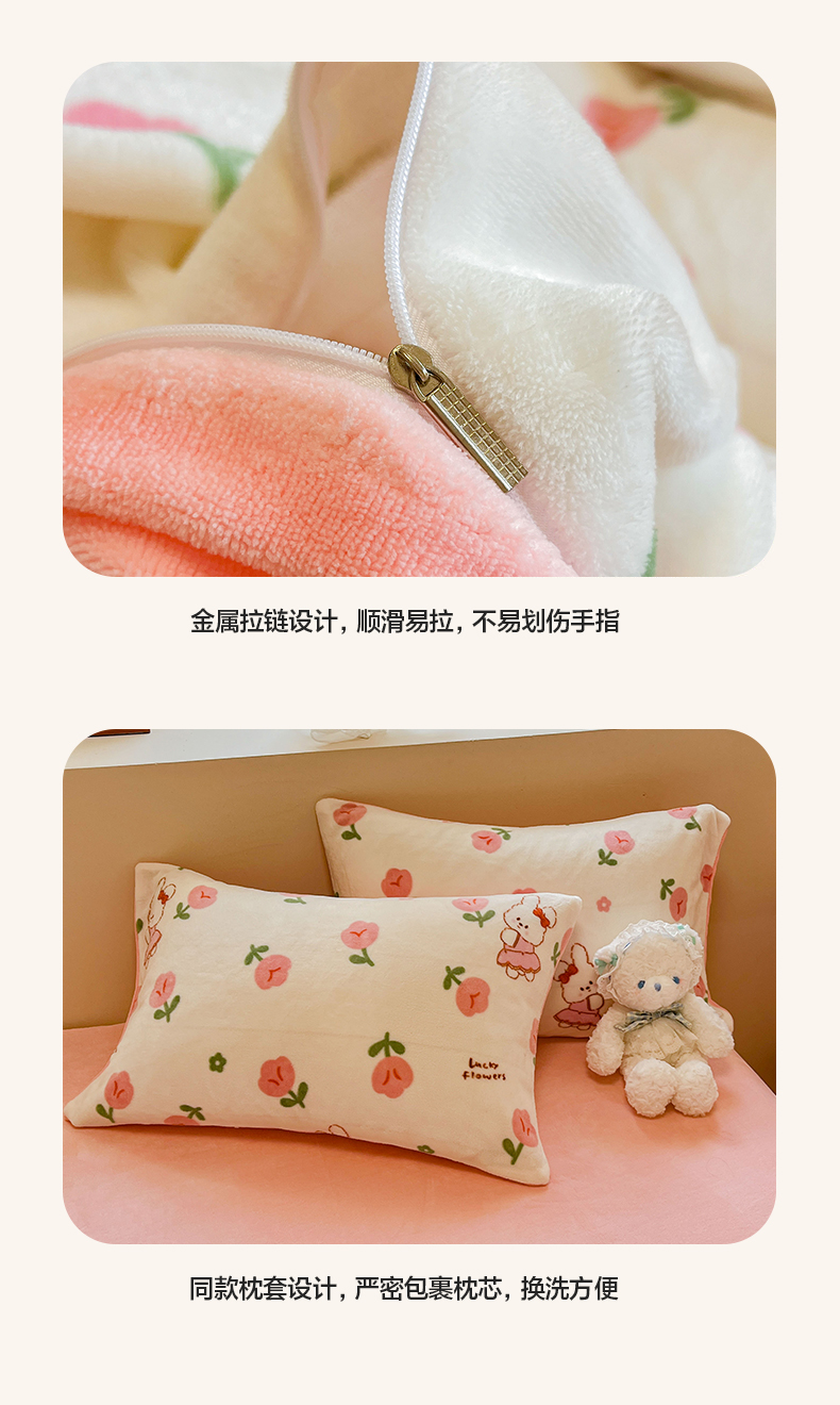 商品名称:沐辰 2023新款牛奶绒印花四件套 快乐小兔