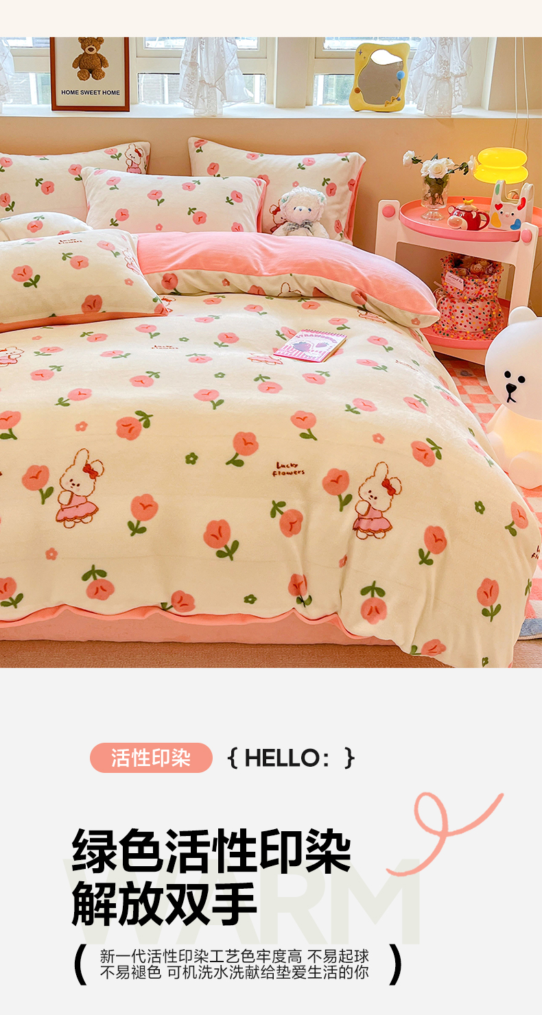 沐辰 2023新款牛奶绒印花四件套 快乐小兔