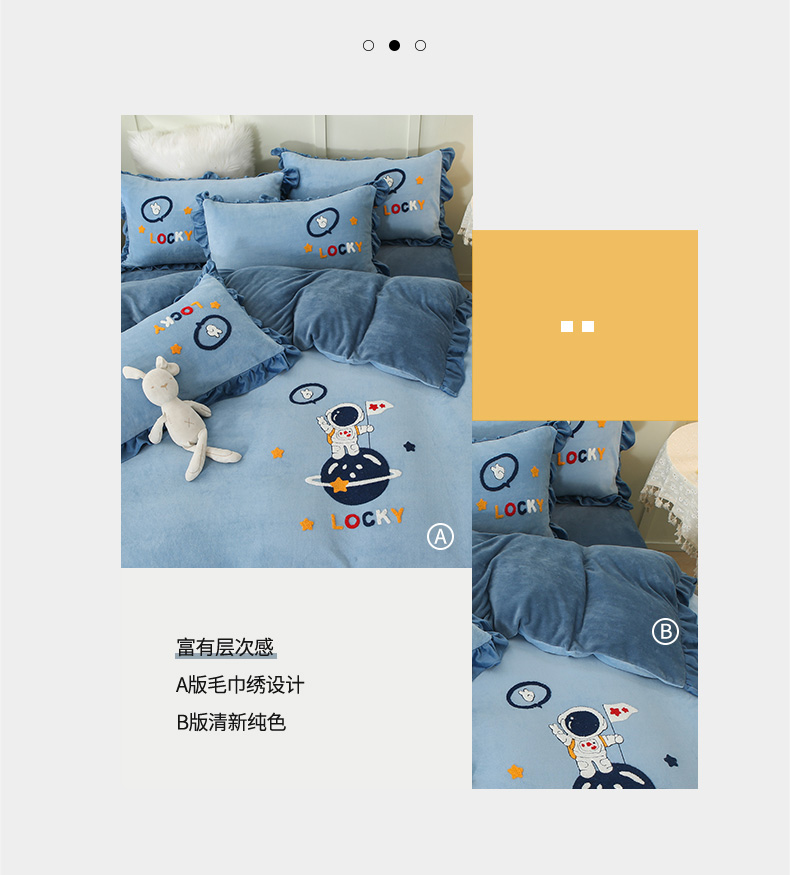 商品名称:沐辰 2023新款韩版绣花加厚牛奶绒四套件 太空人-蓝