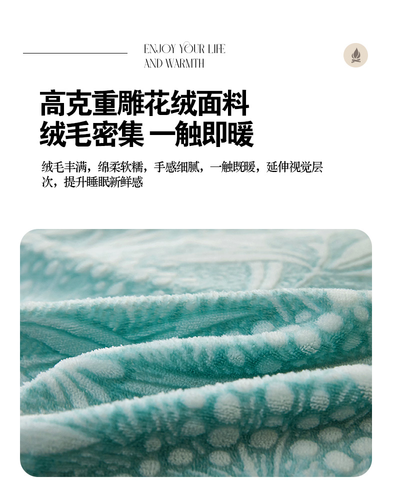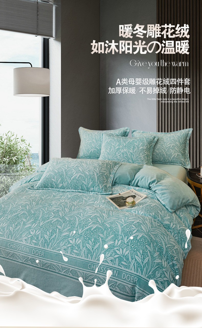 金纱玉纺 2023年新款母婴级雕花绒四件套 芳悠-湖蓝