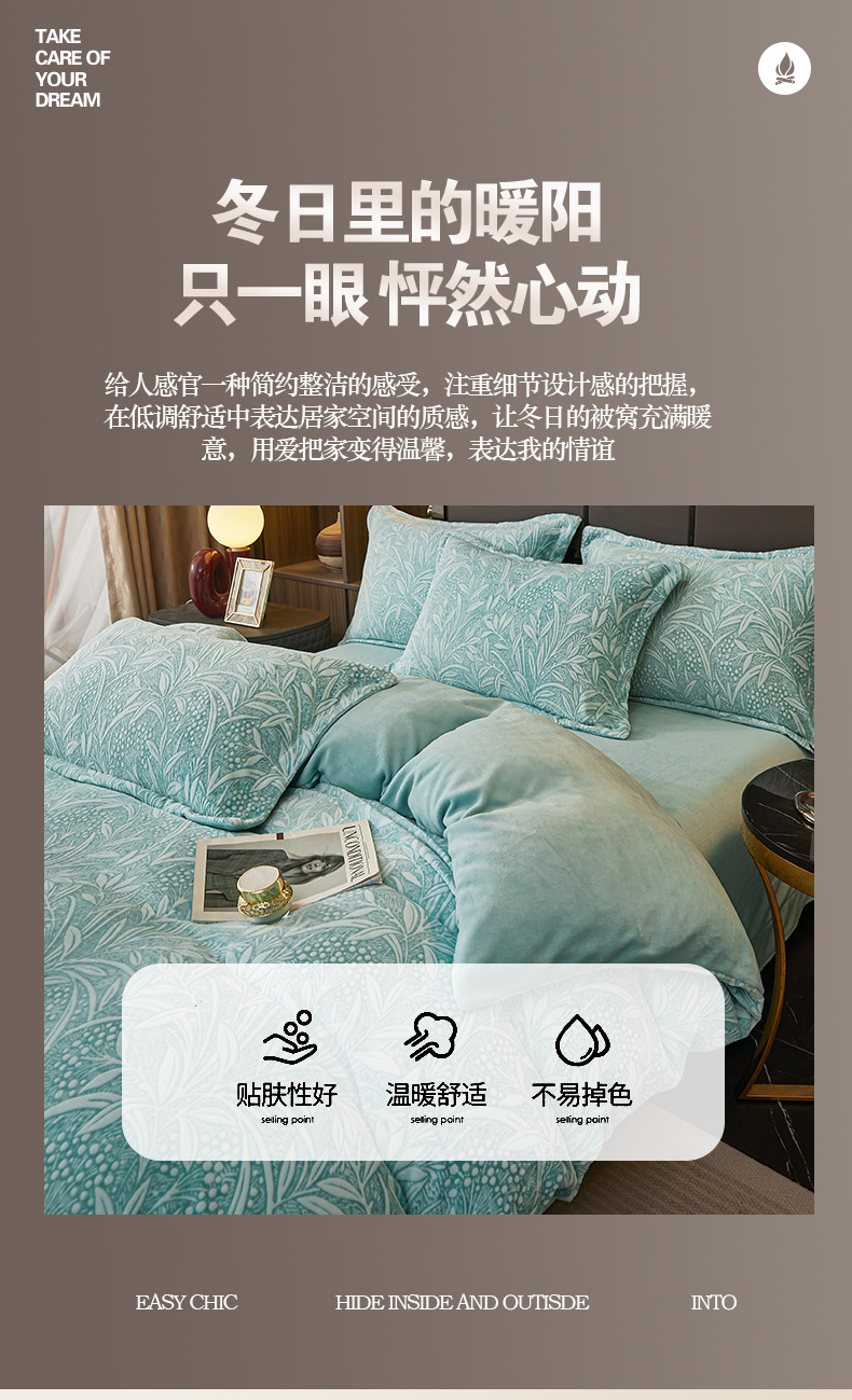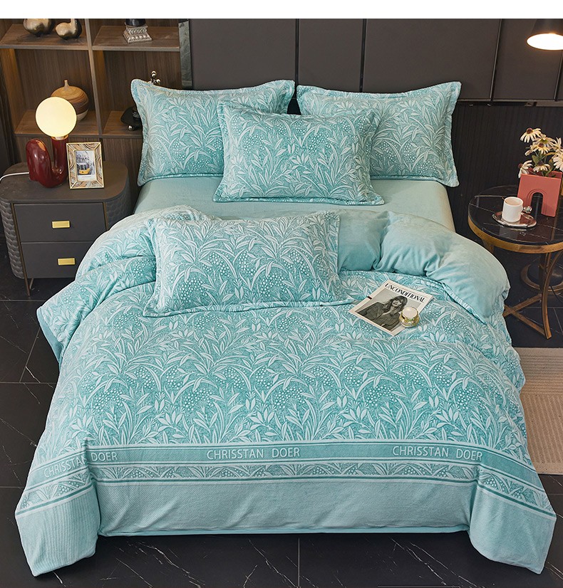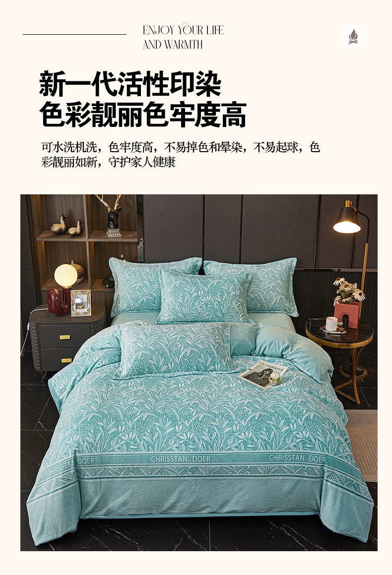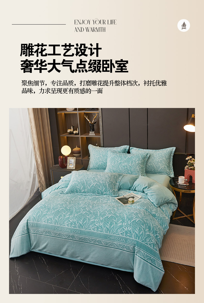 商品名称:金纱玉纺 2023年新款母婴级雕花绒四件套 芳悠-湖蓝