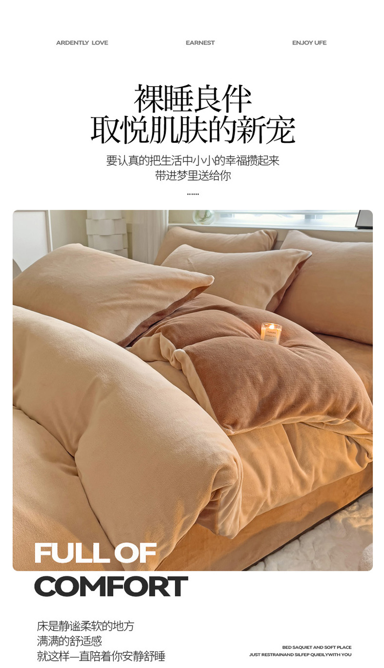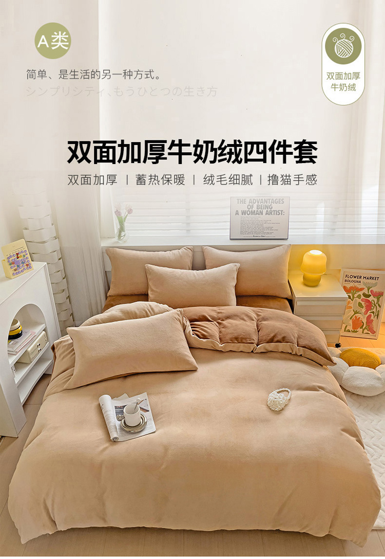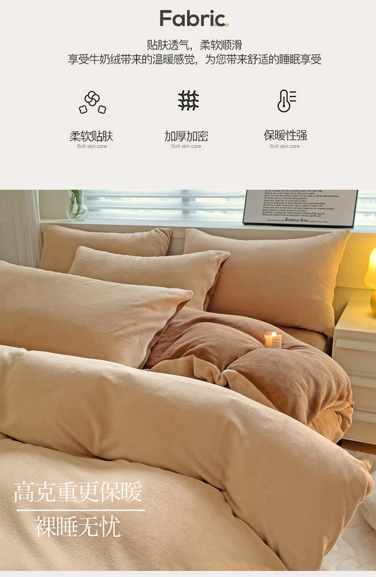 当前位置: 91家纺网 > 商品网购 > 床品套件 > 四件套 > 牛奶绒四件套 > 2023新款高克重舒适纯色牛奶绒单被套 杏仁奶咖
