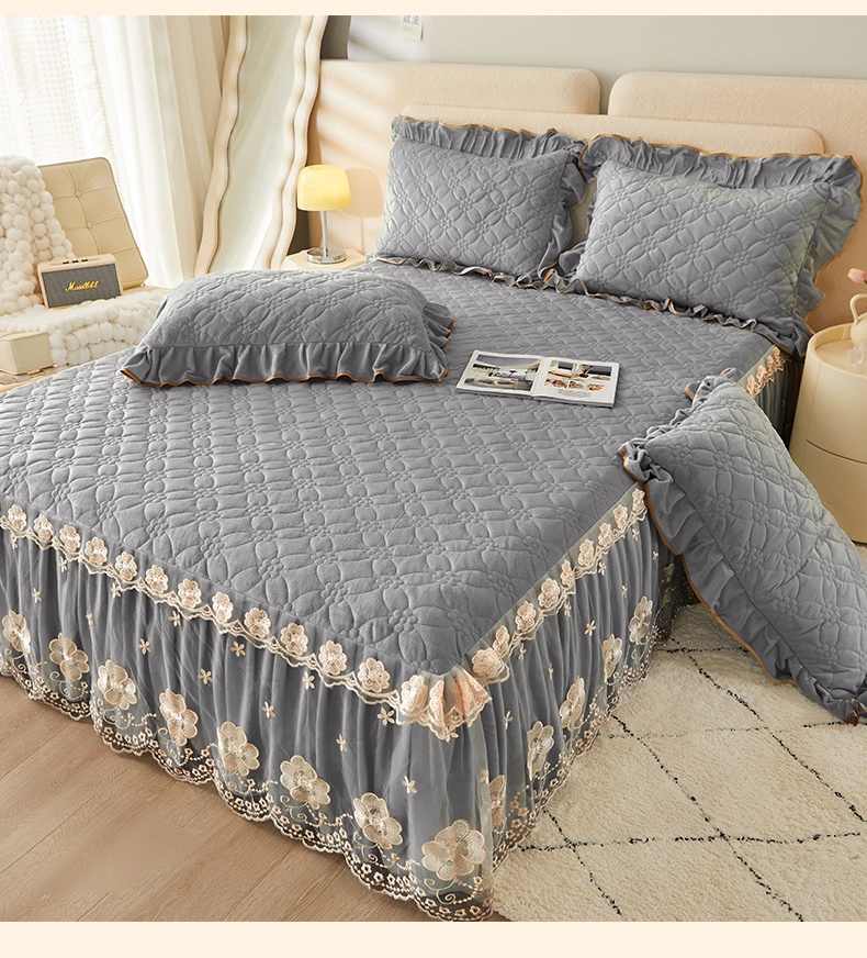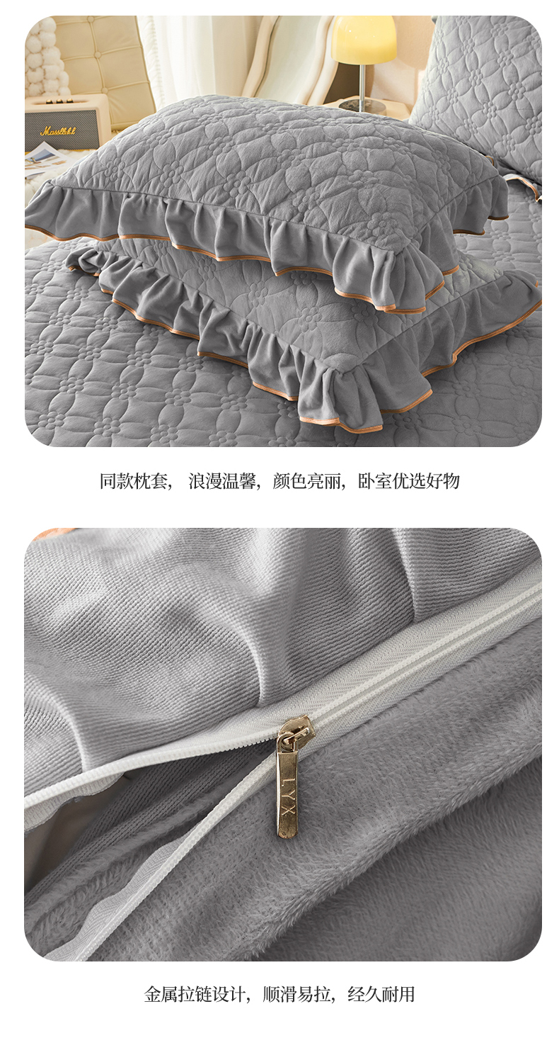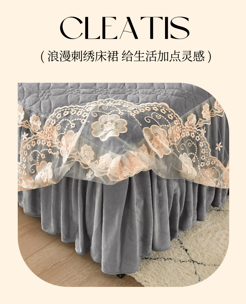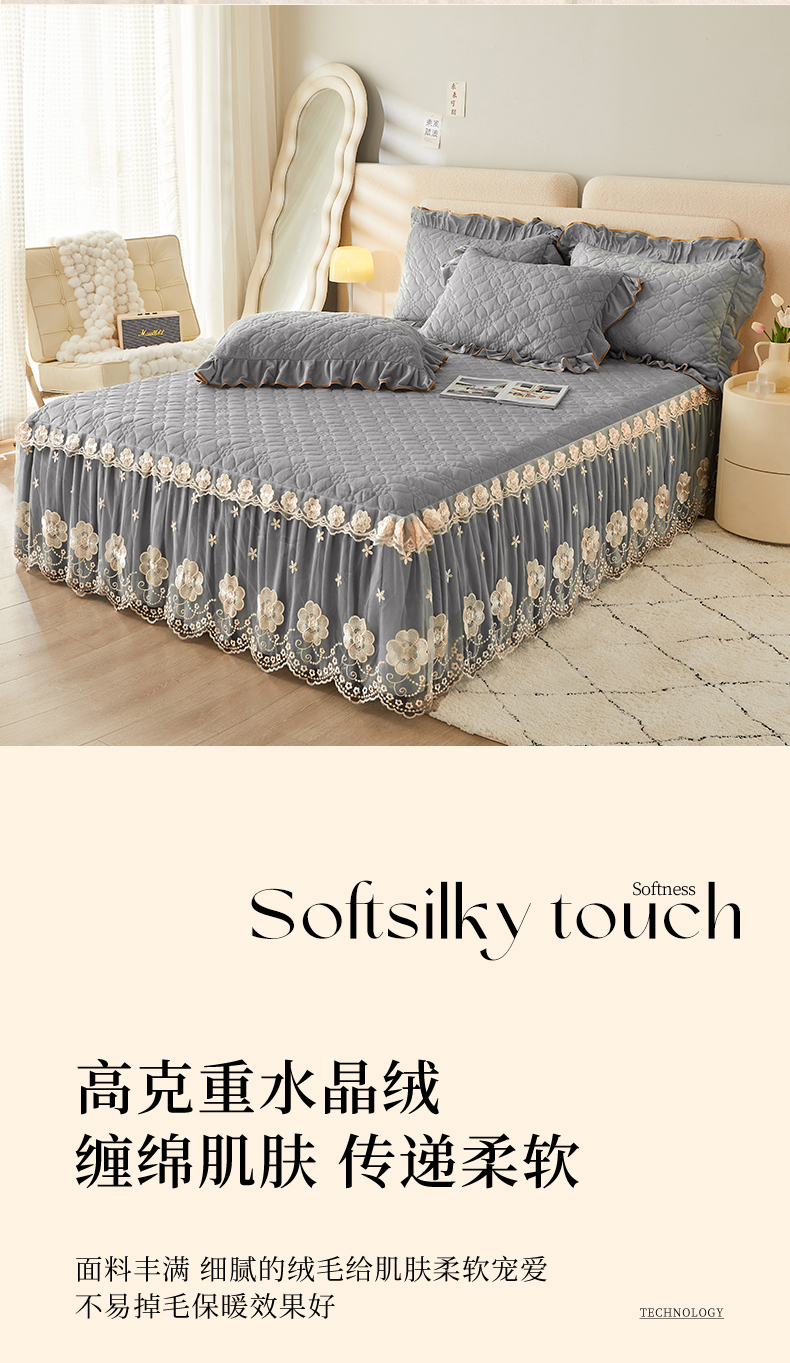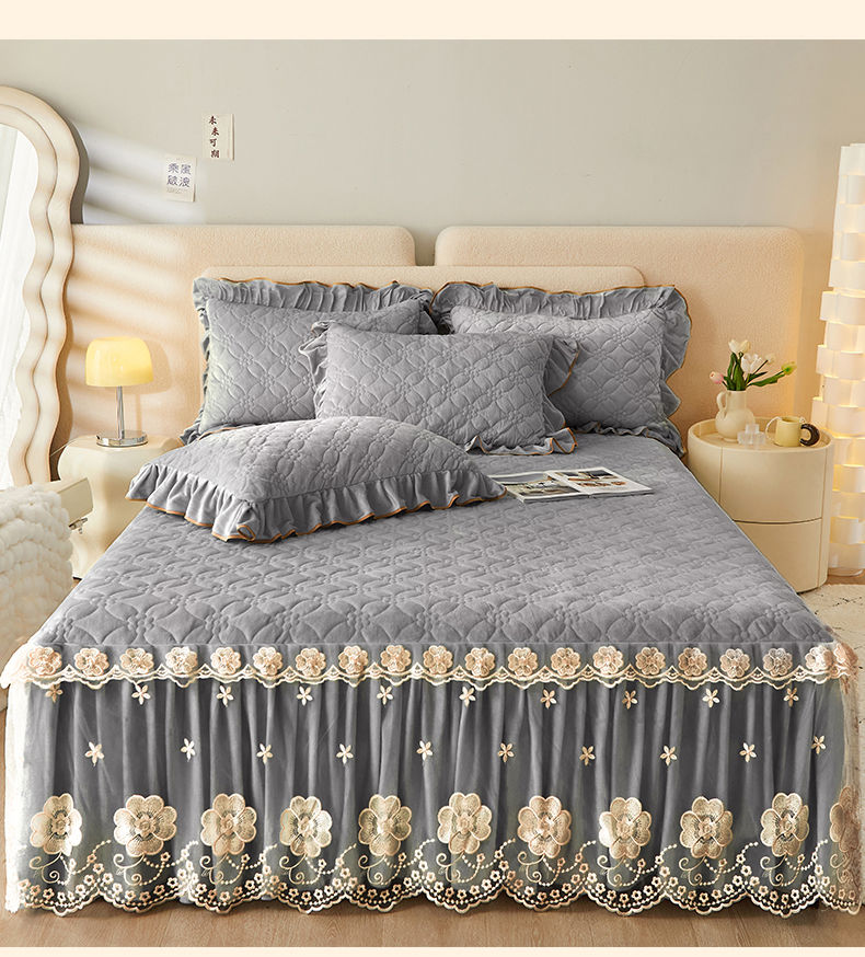 当前位置: 91家纺网 > 商品网购 > 床品套件 > 四件套 > 全棉普通四件套 > 罗艺轩 2024秋冬新款水晶绒花样年华全夹棉加厚床裙四件套 花样年华-高级灰