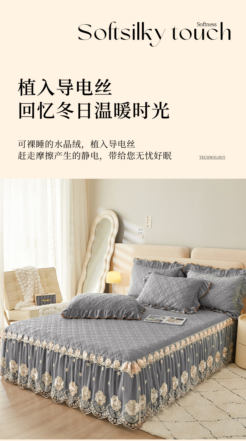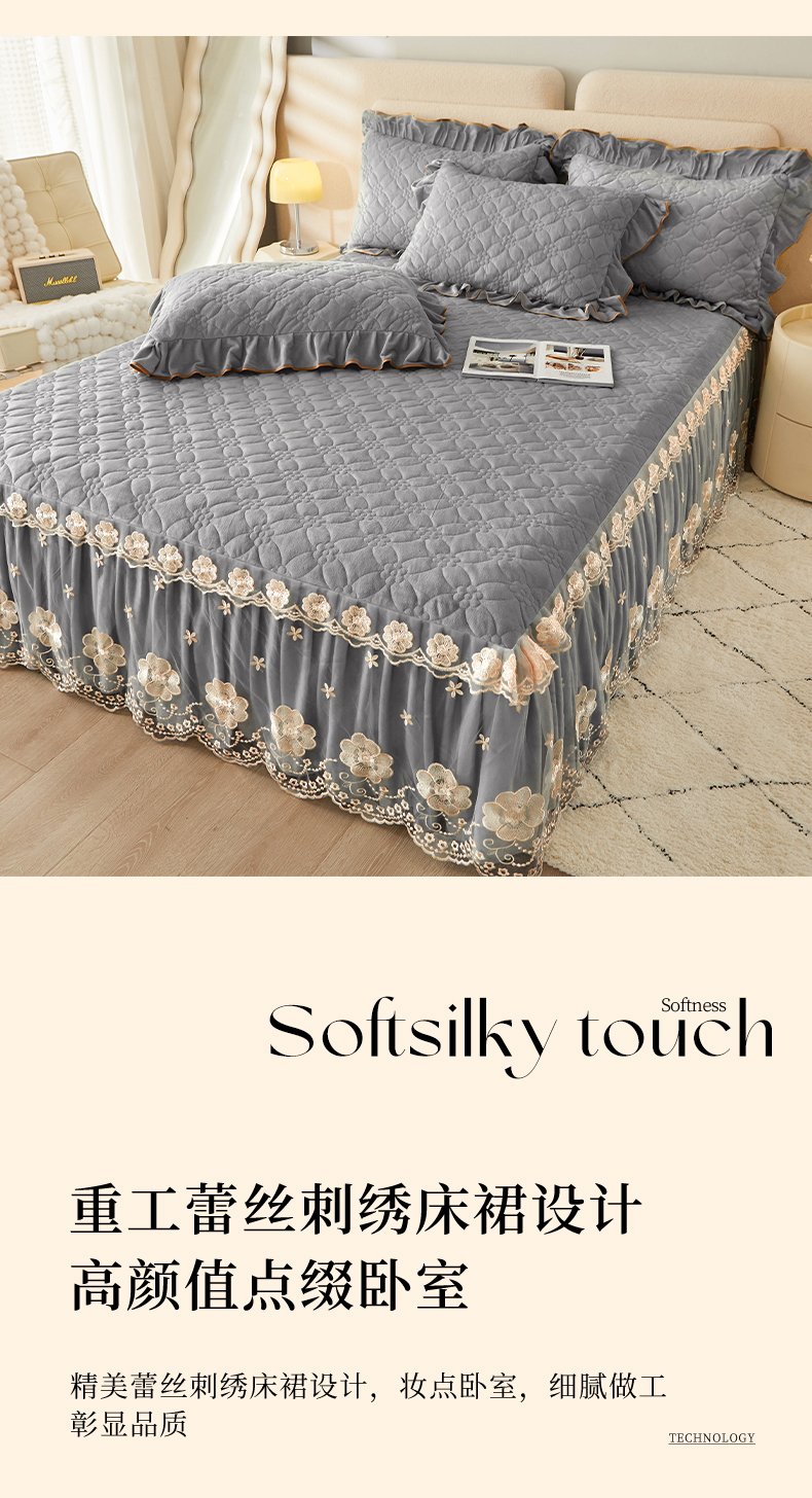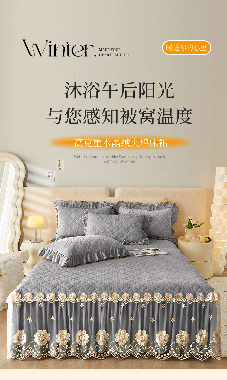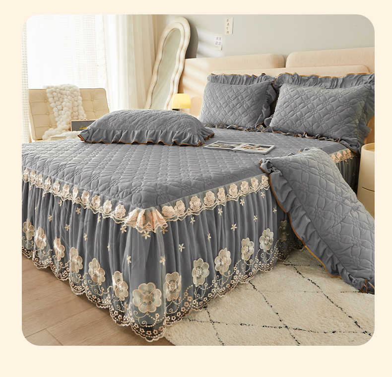 当前位置: 91家纺网 > 商品网购 > 床品套件 > 四件套 > 全棉普通四件套 > 罗艺轩 2024秋冬新款水晶绒花样年华全夹棉加厚床裙四件套 花样年华-高级灰