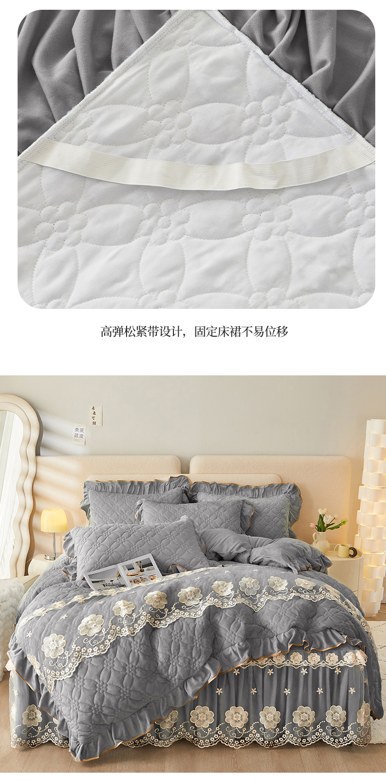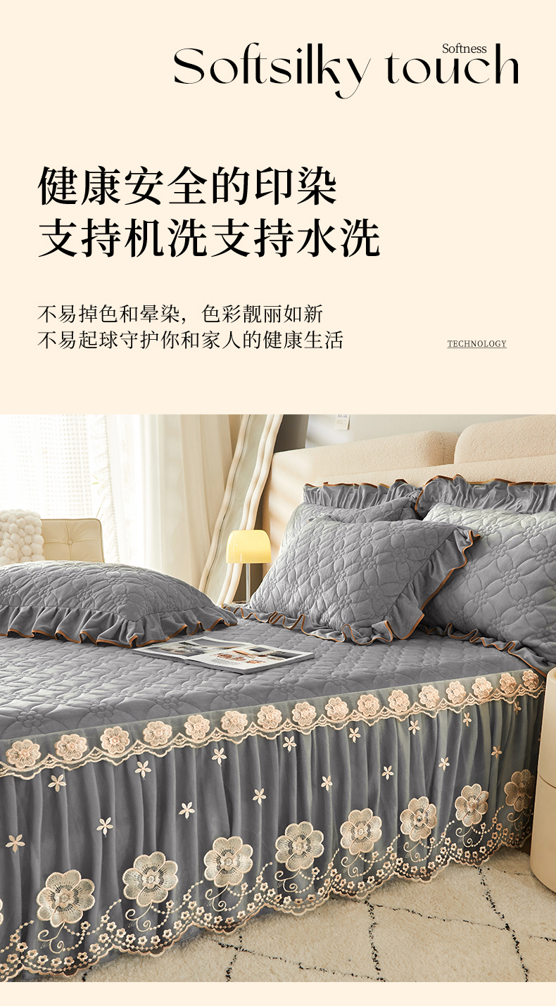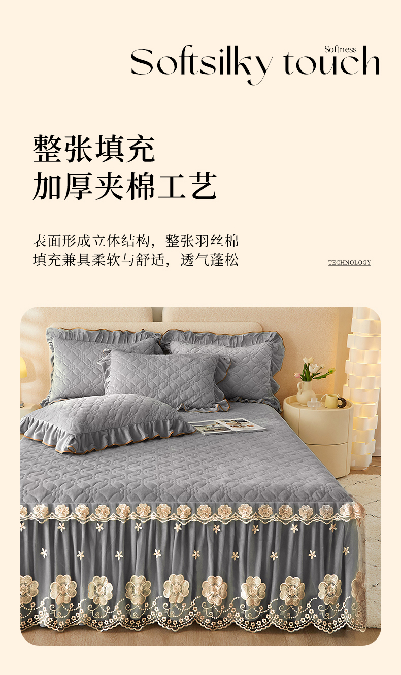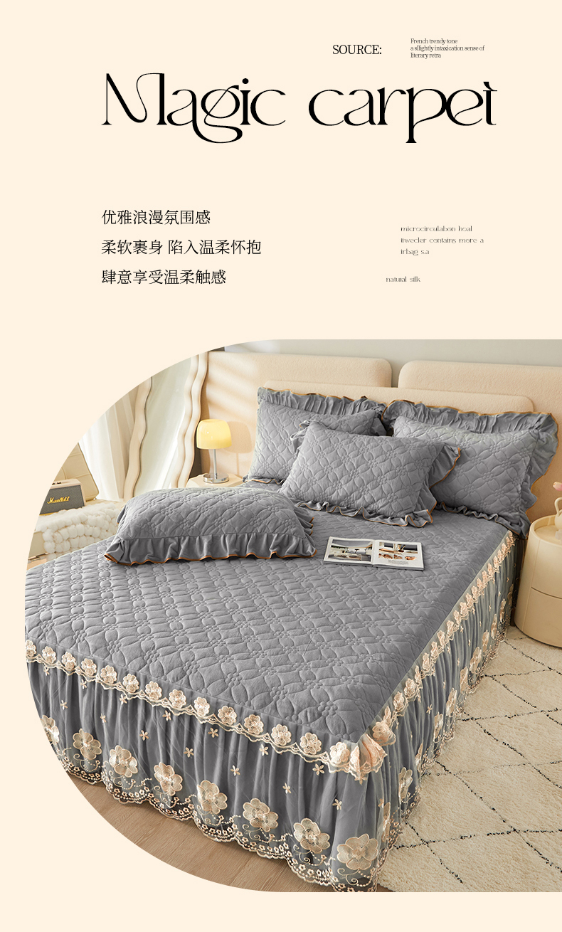 当前位置: 91家纺网 > 商品网购 > 床品套件 > 四件套 > 全棉普通四件套 > 罗艺轩 2024秋冬新款水晶绒花样年华全夹棉加厚床裙四件套 花样年华-高级灰