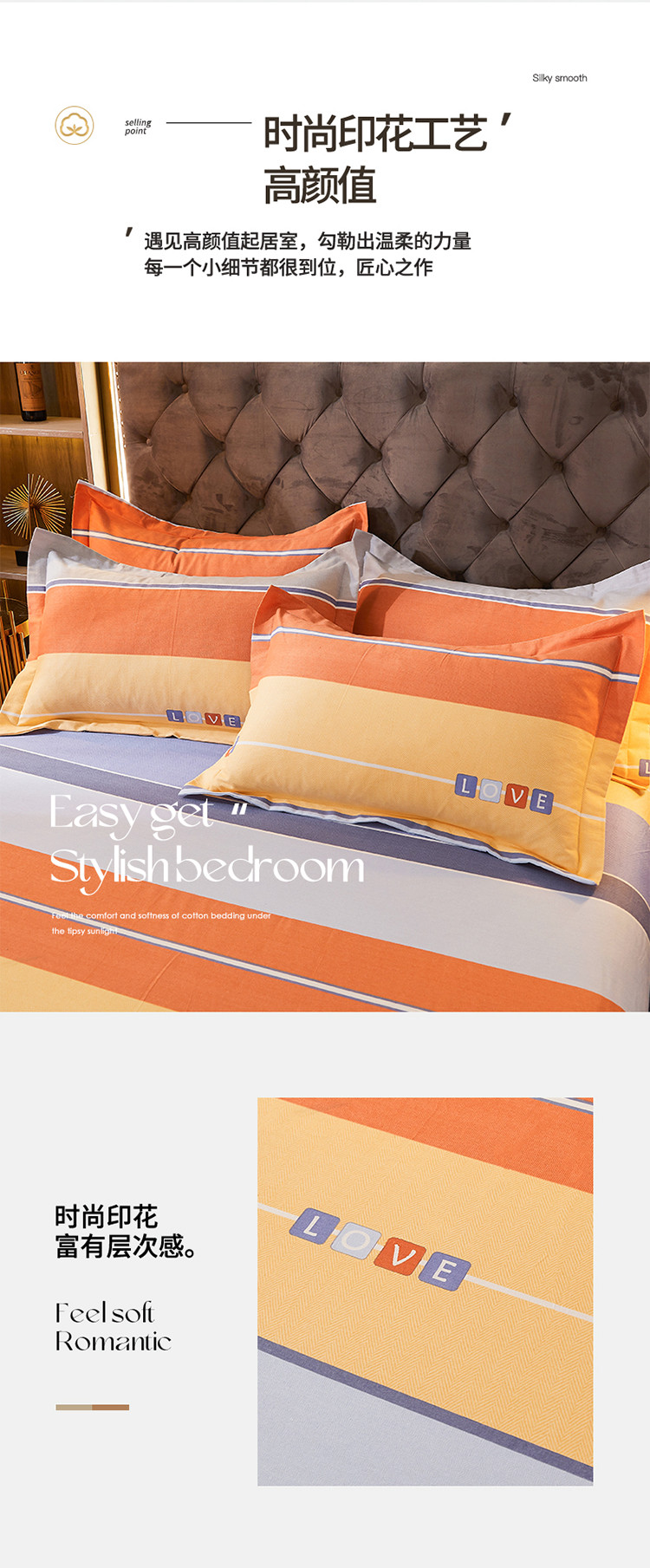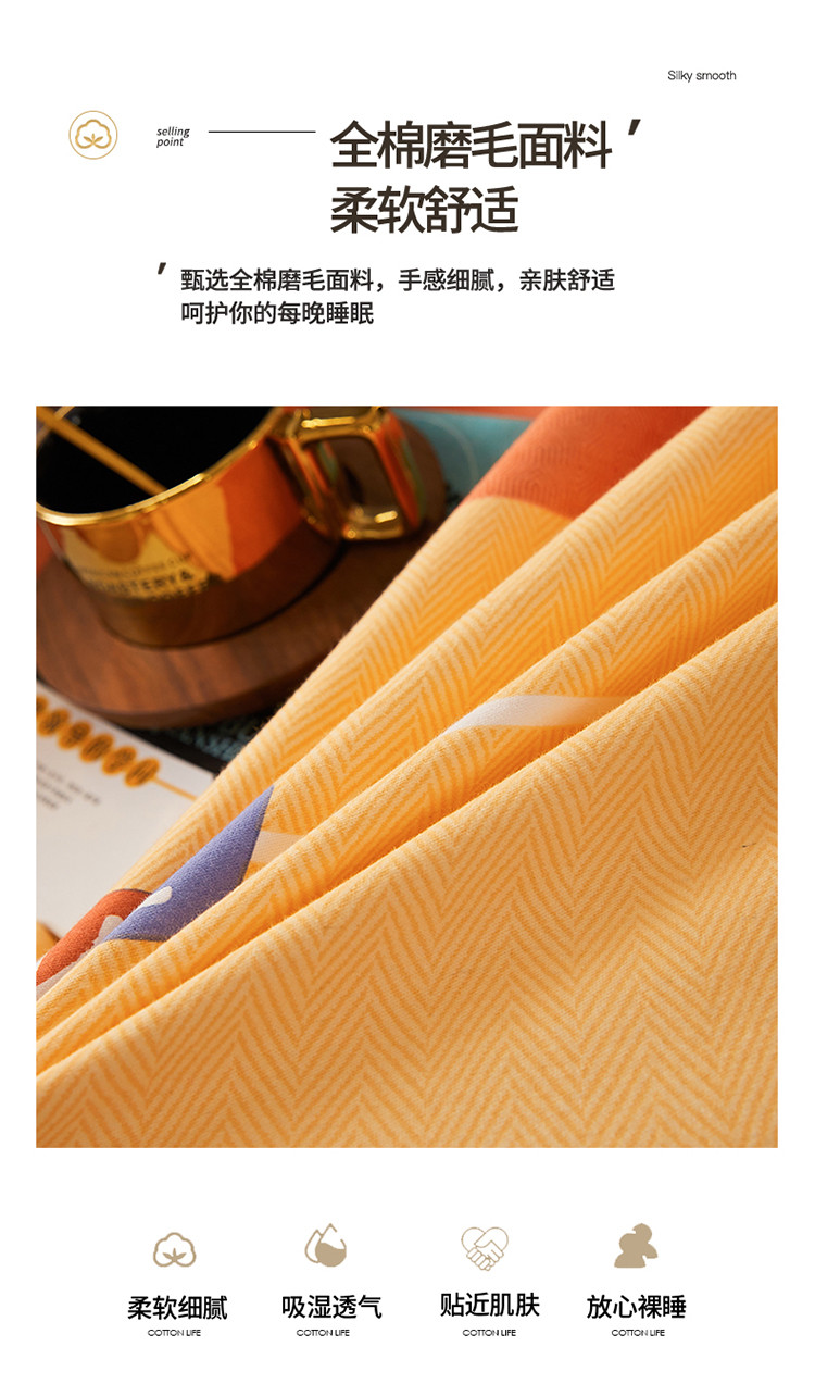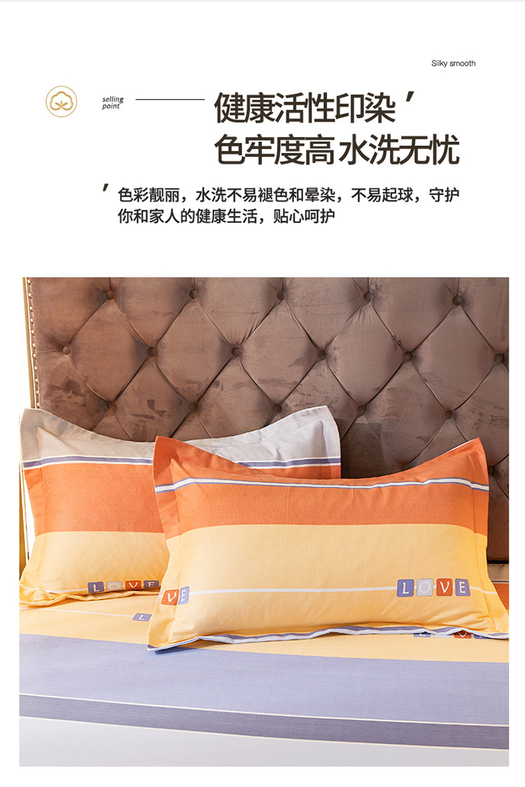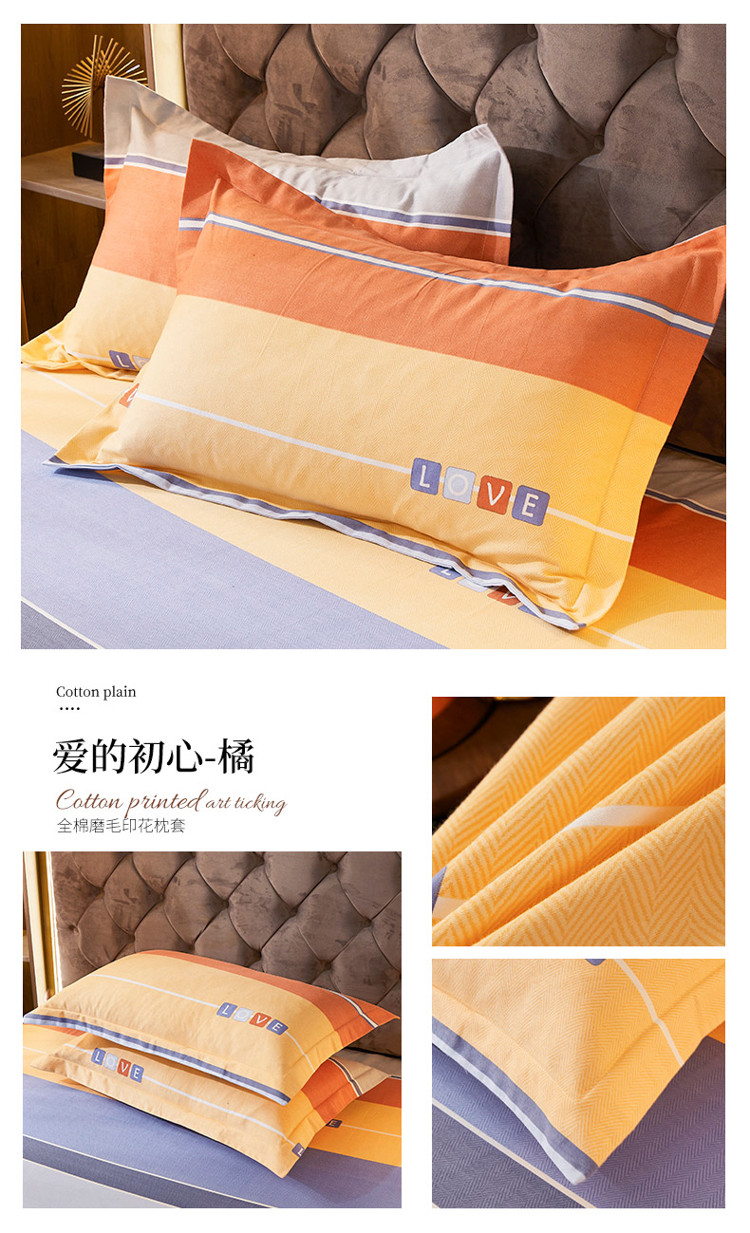 商品名称:伊而梦 2023新款全棉磨毛印花四件套系列单品枕套 爱的初心-橘