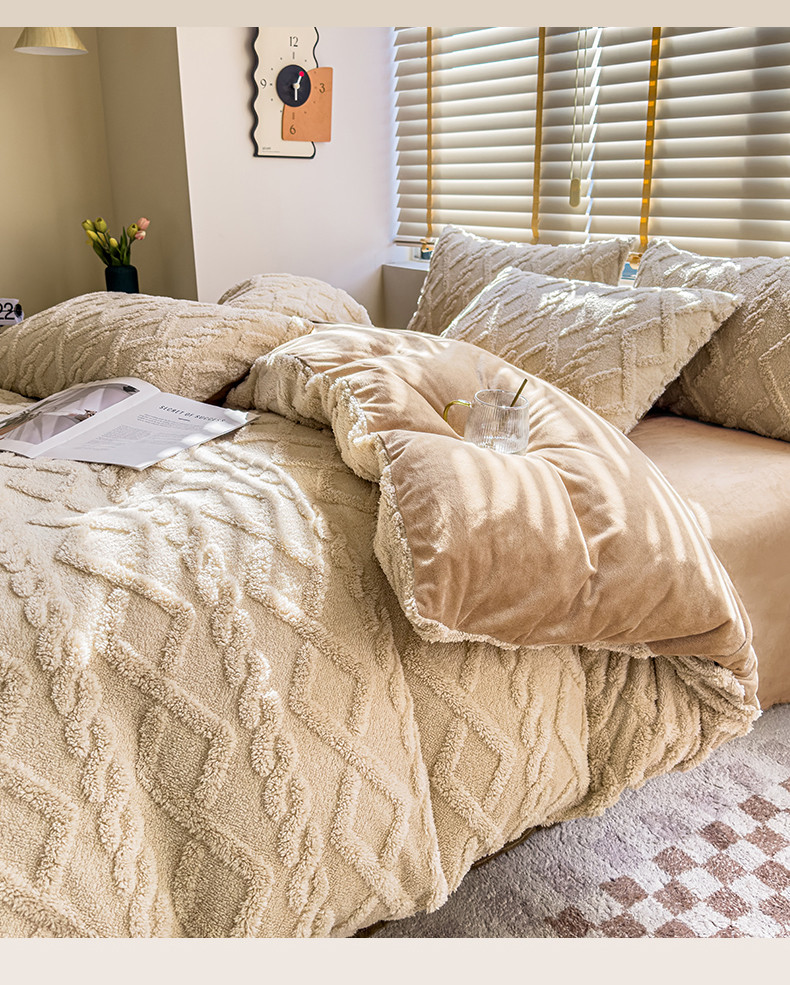 (总)潮邦创意家居 2025新款冬季提花奶芙绒牛奶绒四件套-暖绒奶芙系列,暖绒奶芙--星紫,暖绒奶芙-艾草绿,暖绒奶芙-米咖,暖绒奶芙-粉色,暖绒奶芙-咖,暖绒奶芙-绅灰