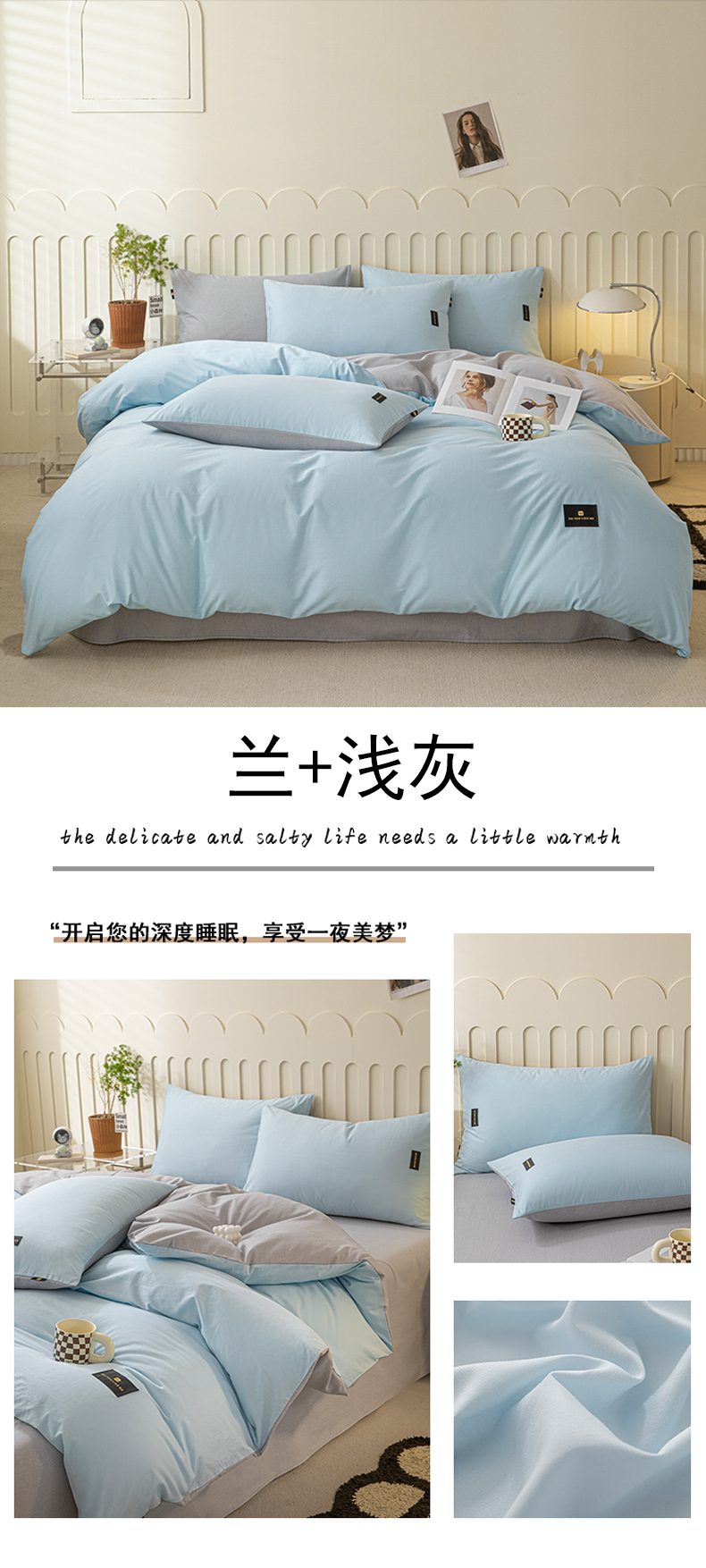 当前位置: 91家纺网 > 商品网购 > 床品套件 > 四件套 > 磨毛活性四件套 > 涵宸家纺 棉磨毛-纯色织标-四件套(含单品) 兰+浅灰