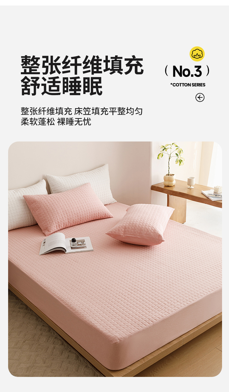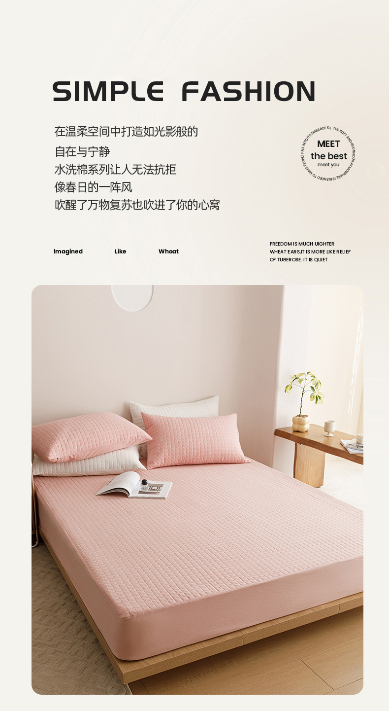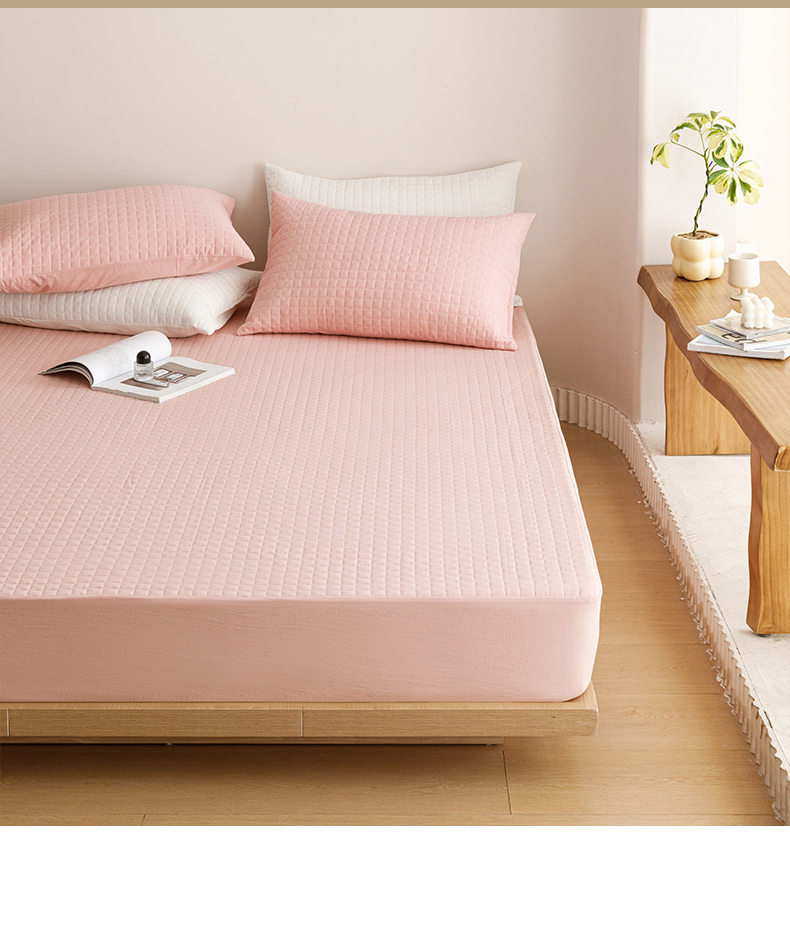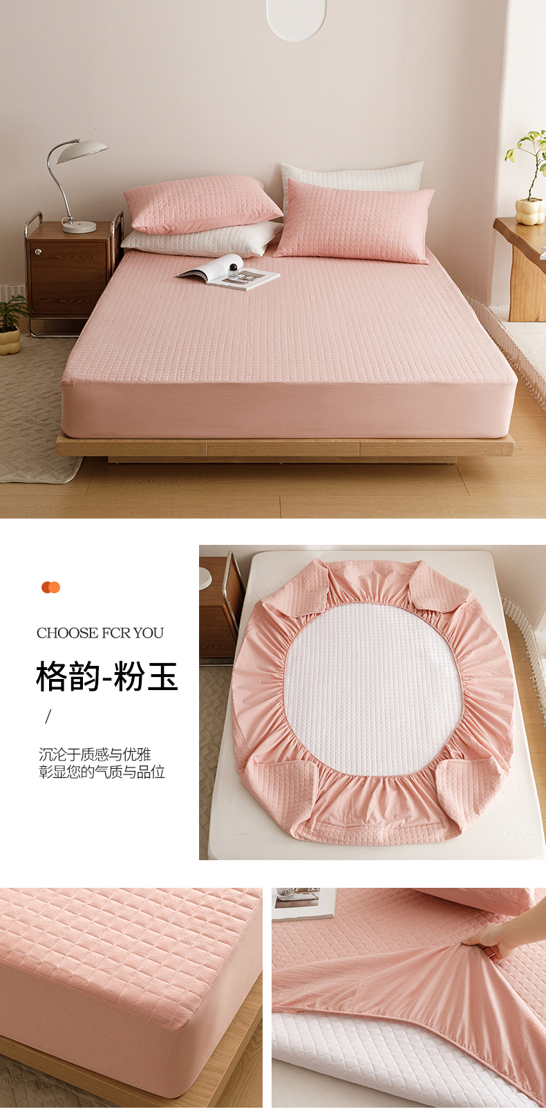 商品名称:忘忧草 2023新款A类全棉色织水洗夹棉床笠 格韵-粉玉