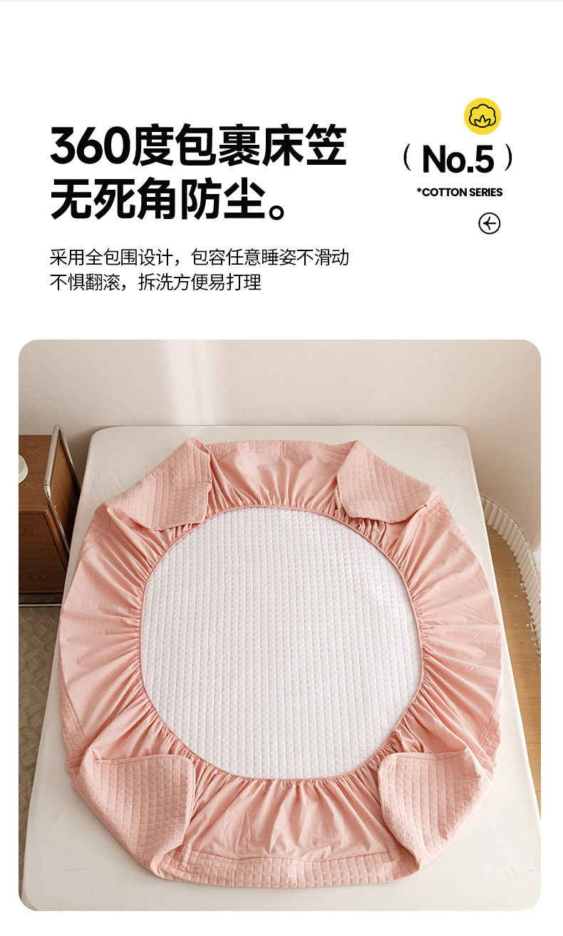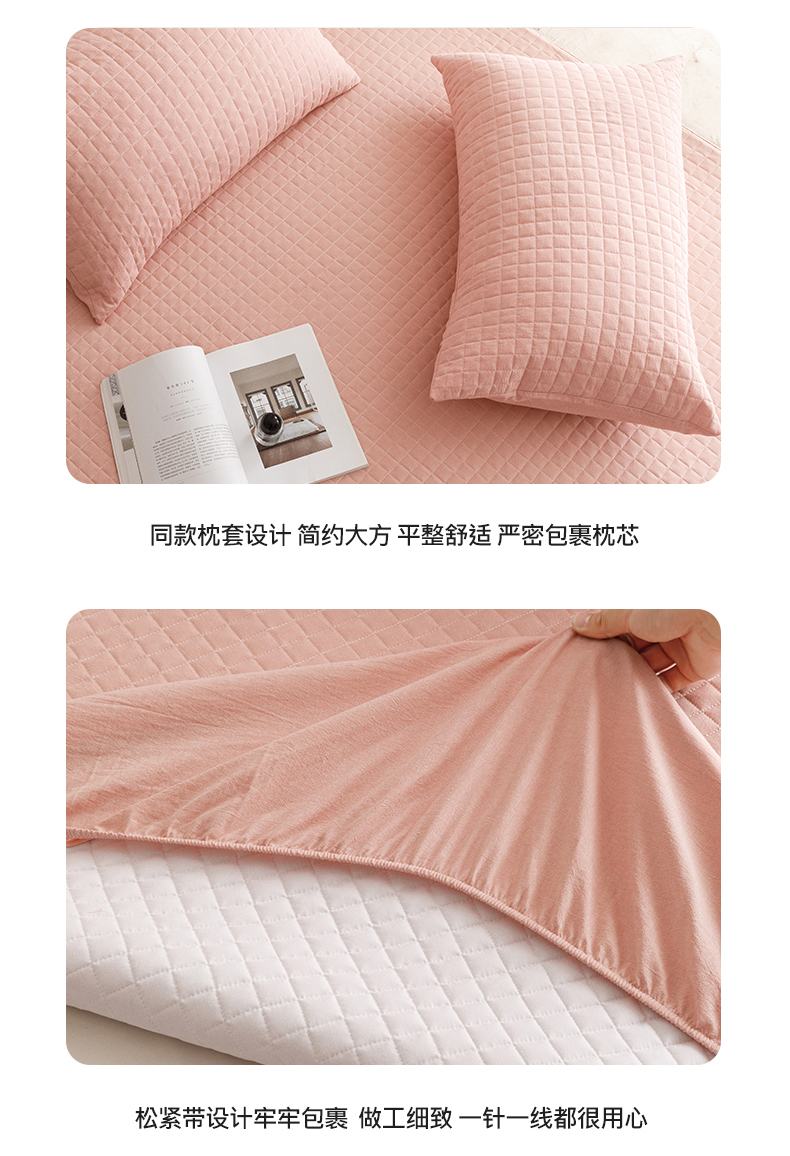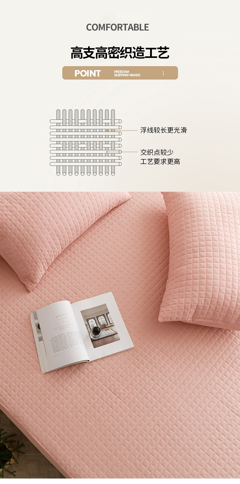 商品名称:忘忧草 2023新款A类全棉色织水洗夹棉床笠 格韵-粉玉