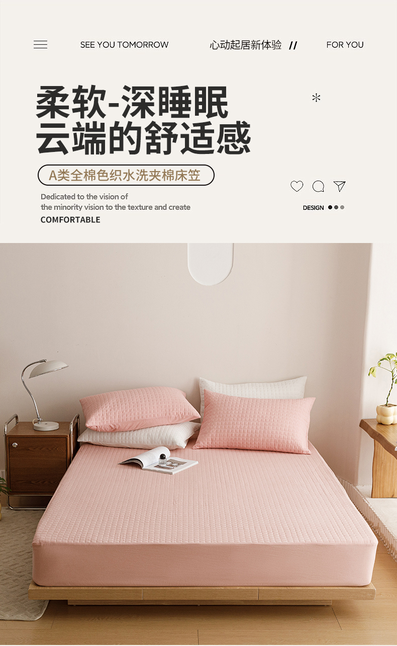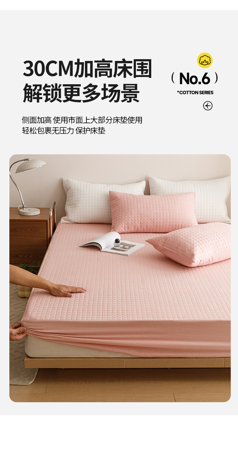 (总)忘忧草 2025新款A类针织棉夹棉防水床笠隔尿垫床罩,淡雅白,豆沙红,翡翠绿,丽人粉,浅米黄,绅士灰