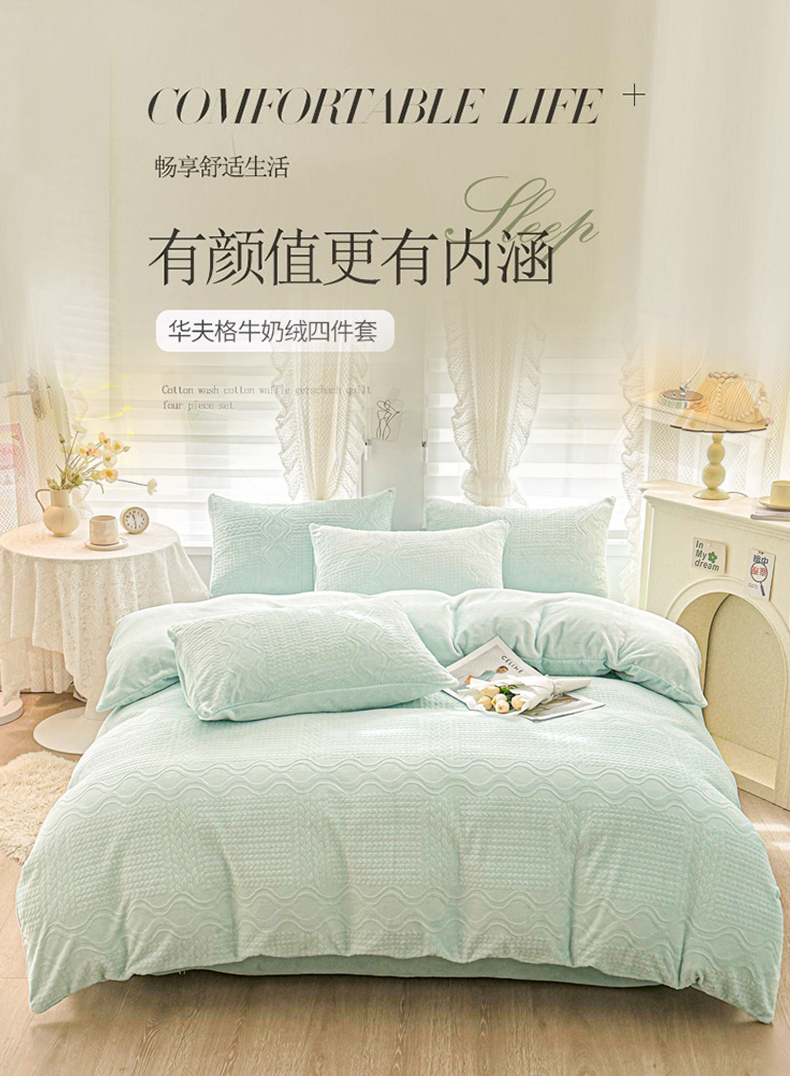 当前位置: 91家纺网 > 商品网购 > 床品套件 > 四件套 > 牛奶绒四件套 > 雅萱家纺 2023新款简约华夫绒四件套 简约华夫蓝色