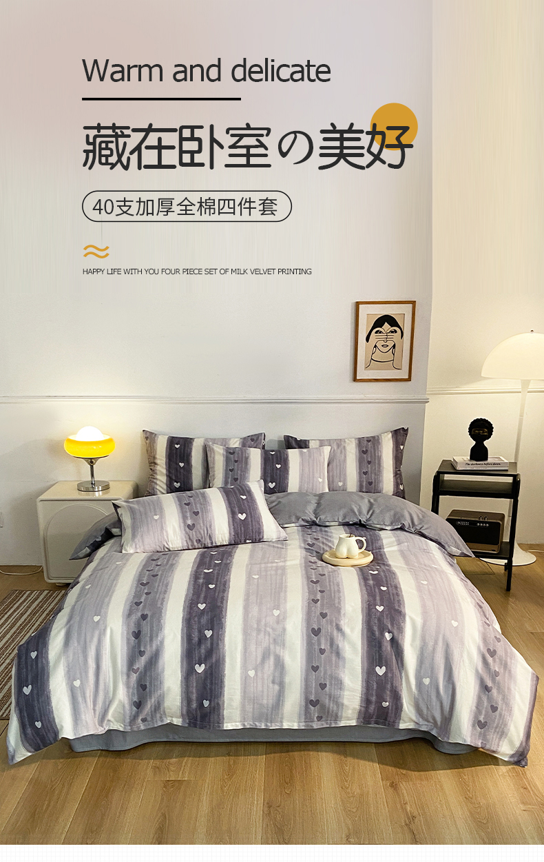 (总)小懒猪 2026新款北欧风高支高密全棉纯棉四件套(提供买家秀),铂格纹,淡紫花屹,粉喵甜梦,蓝调喵趣,蓝灰格序,蓝絮银织,柳色衫林,漫彩花韵,喵语时光,墨旋,沐风苍兰,青蔓花盏,清棱,森屹兔眠,素环影,素律,童梦汪旅,雾蓝花簇,线影轻痕,星兔软糖,元气熊仔,紫粉花漾