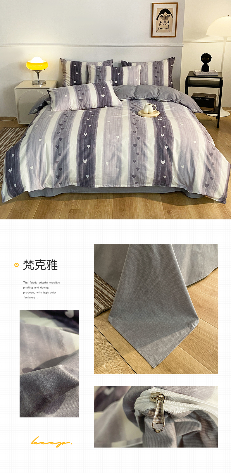 商品名称:小懒猪 2024春夏新款北欧风13372全棉四件套 梵克雅