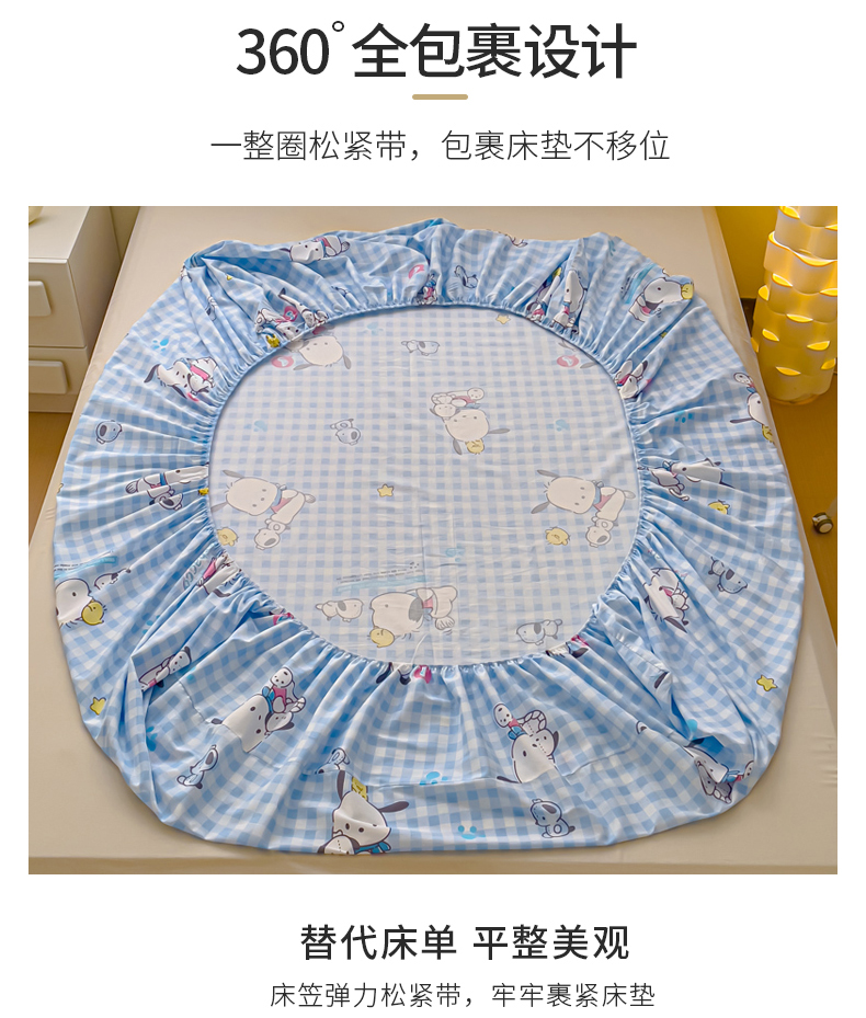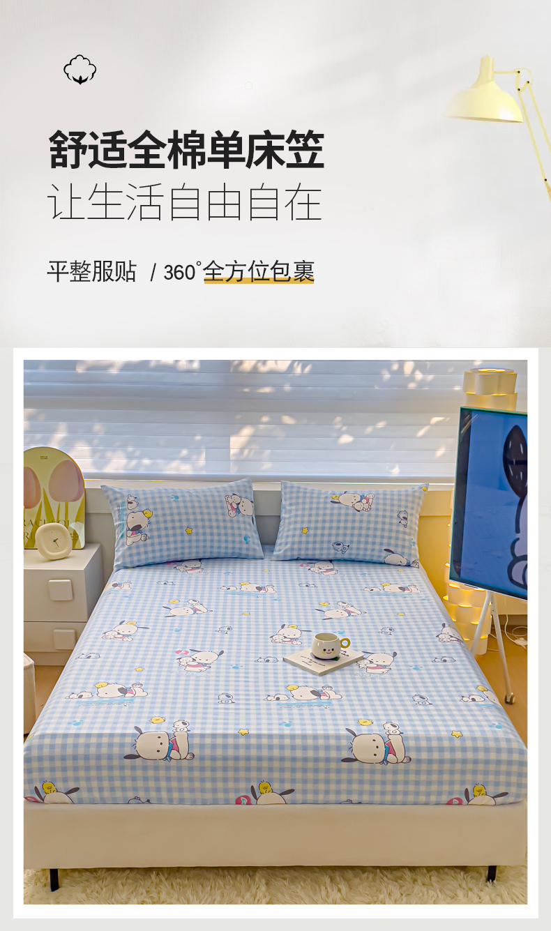 金丝鸟家纺 2024新款全棉三丽鸥系列床笠 格子帕恰狗