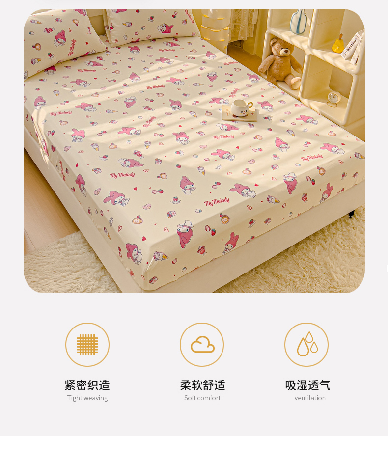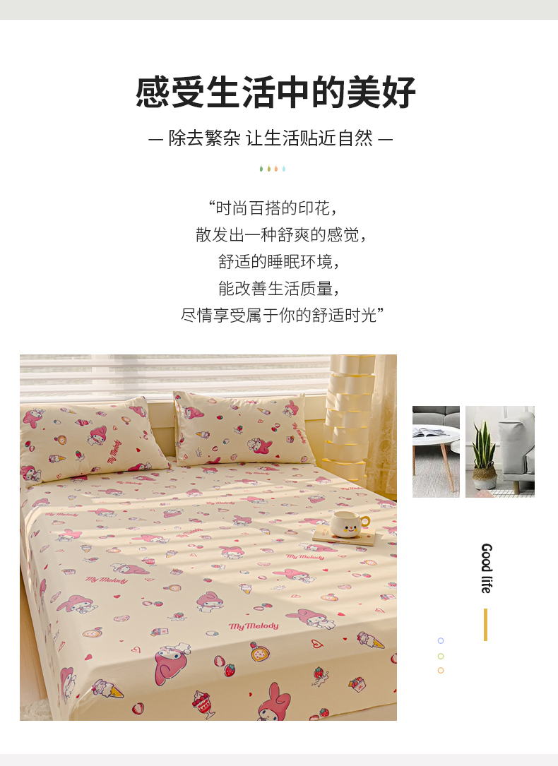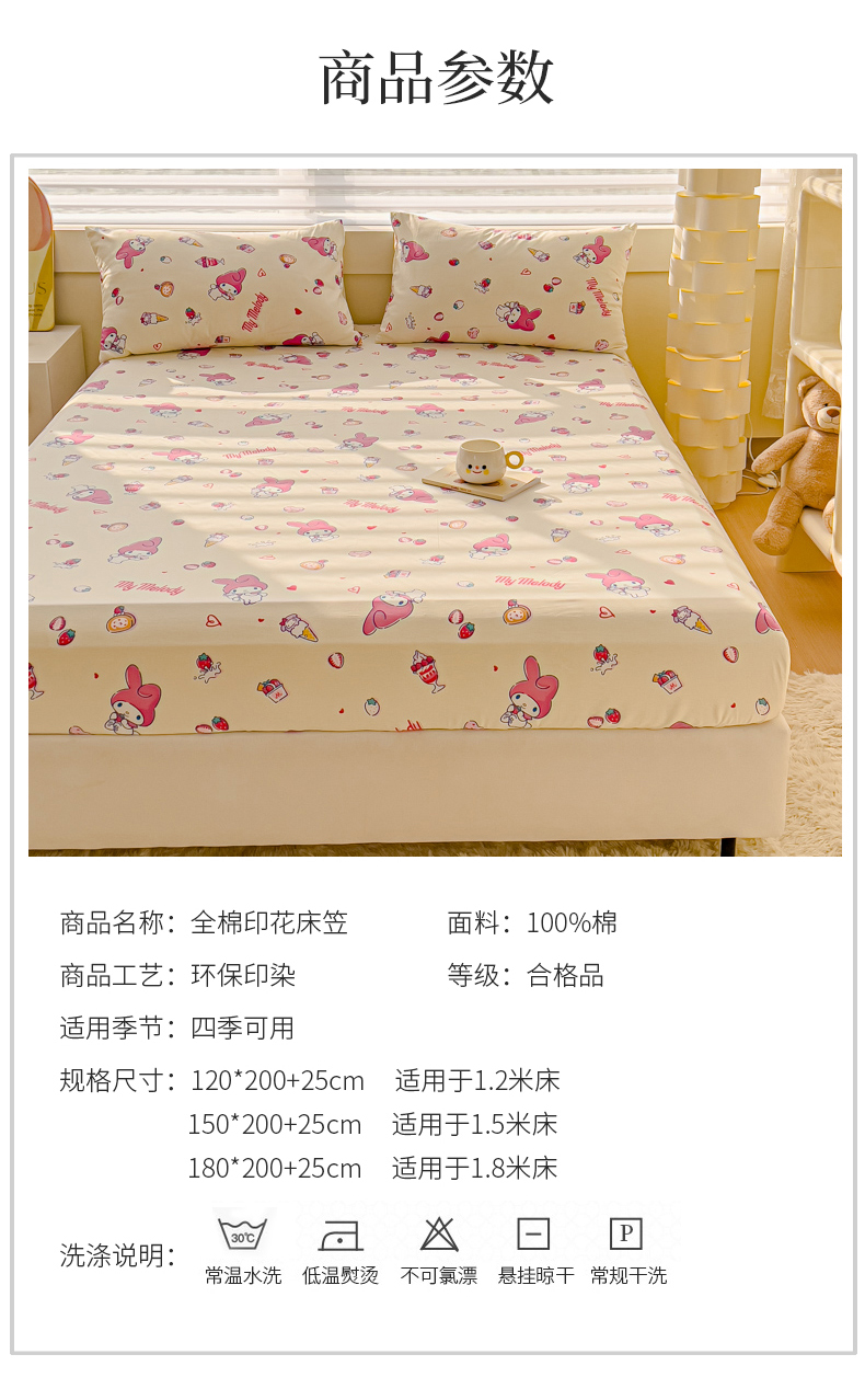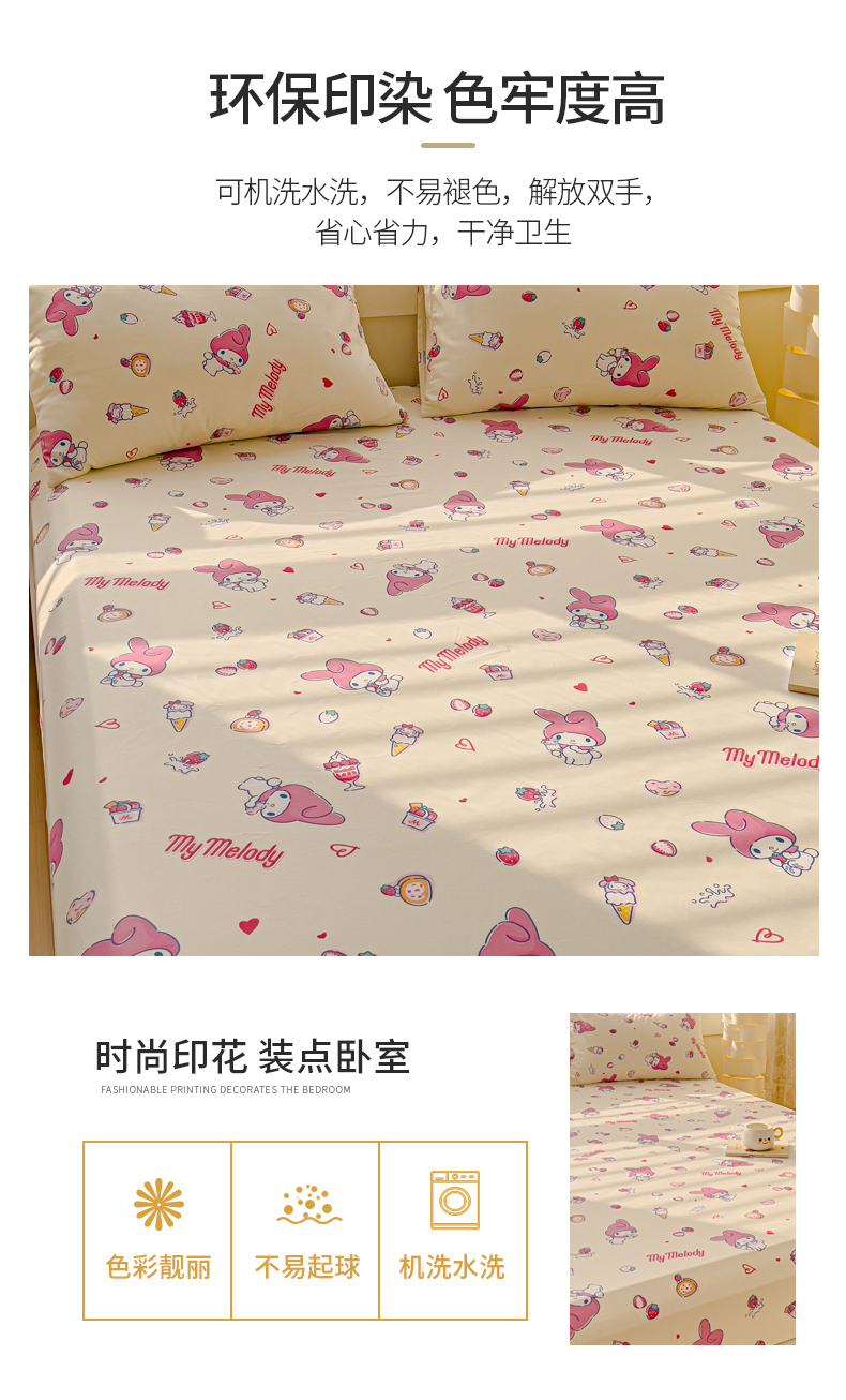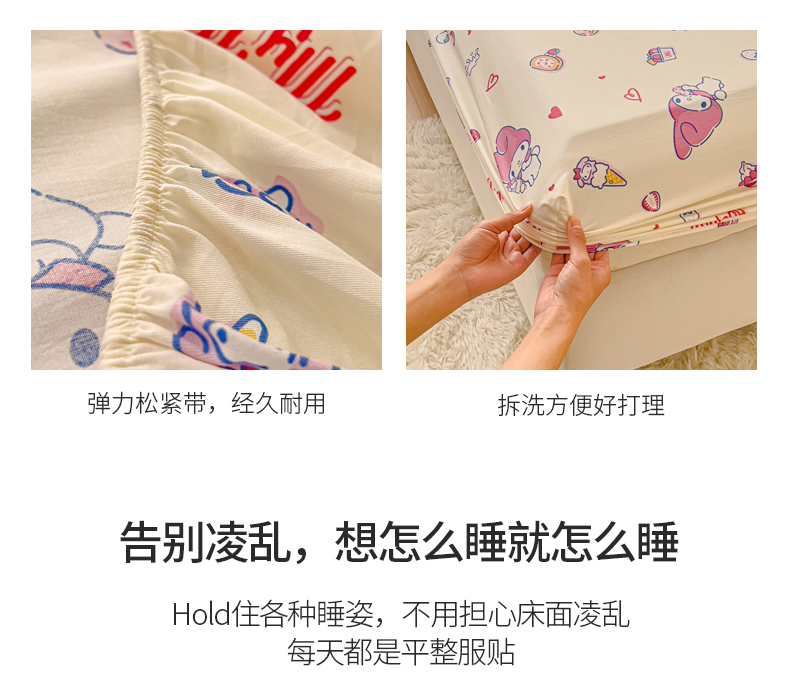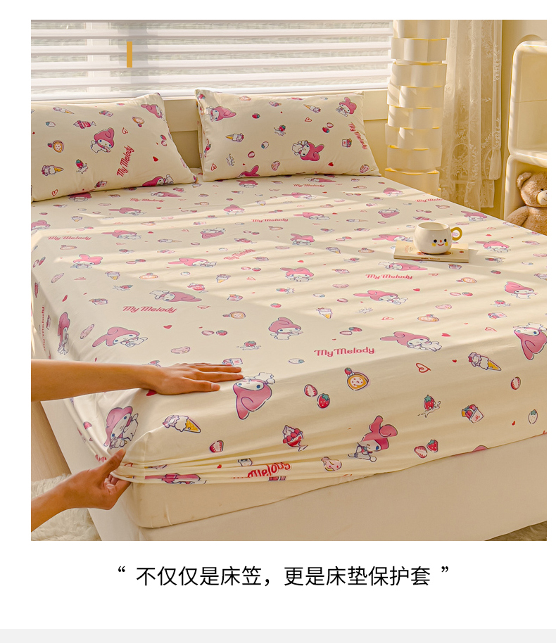 • 91家纺网 家纺一手货源 找家纺 金丝鸟家纺 2024新款全棉三丽鸥系列床笠 甜心小兔