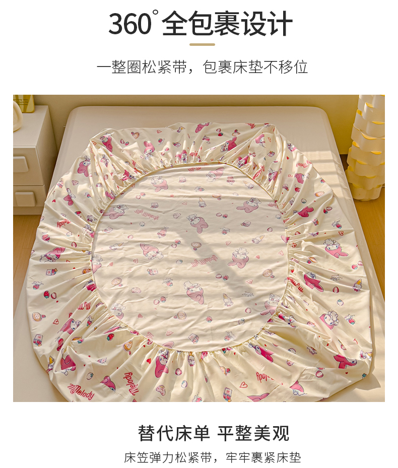 金丝鸟家纺 2024新款全棉三丽鸥系列床笠 甜心小兔