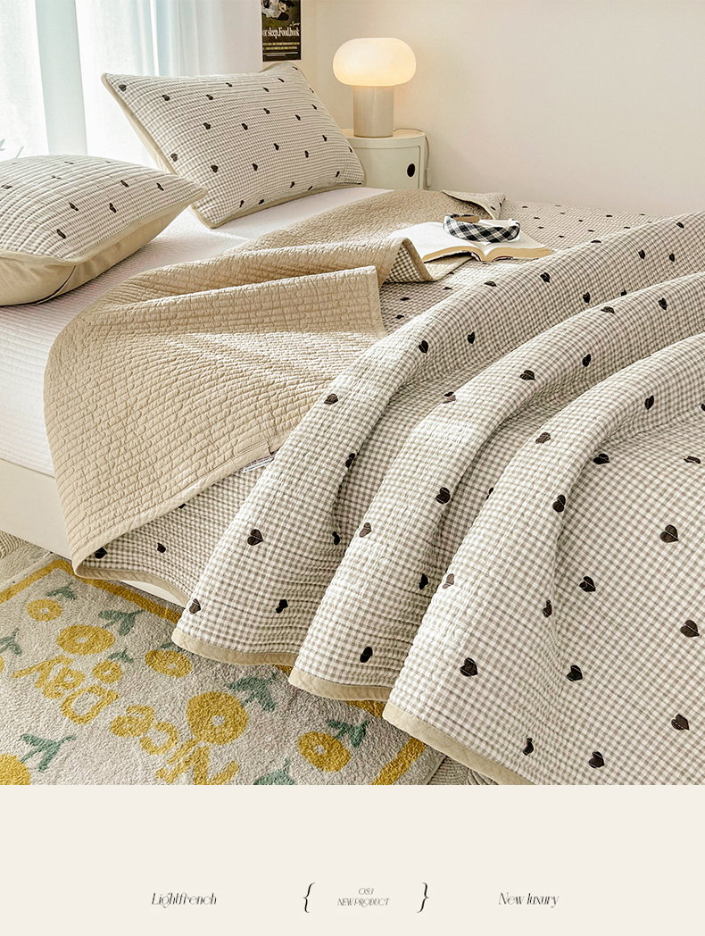 茉夕家纺 2024新款纯棉斜纹13372双面纯棉床盖 守护爱心