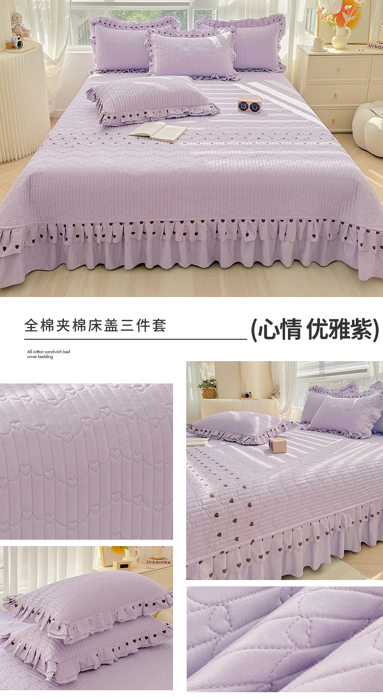宜凡家纺 2024新品全棉夹棉床盖三件套-心情 心情 优雅紫