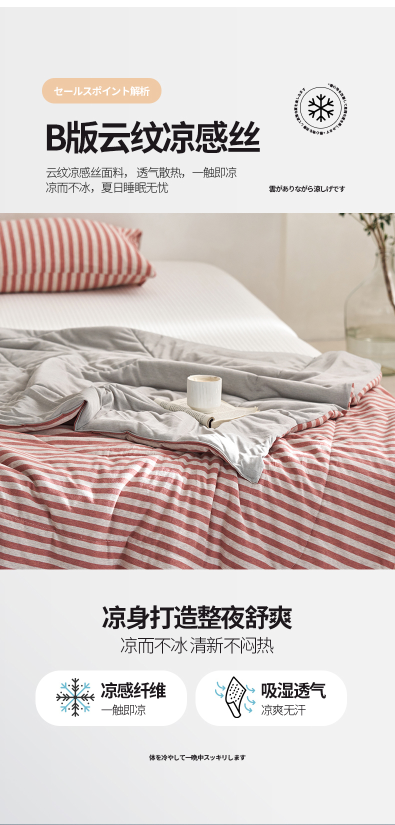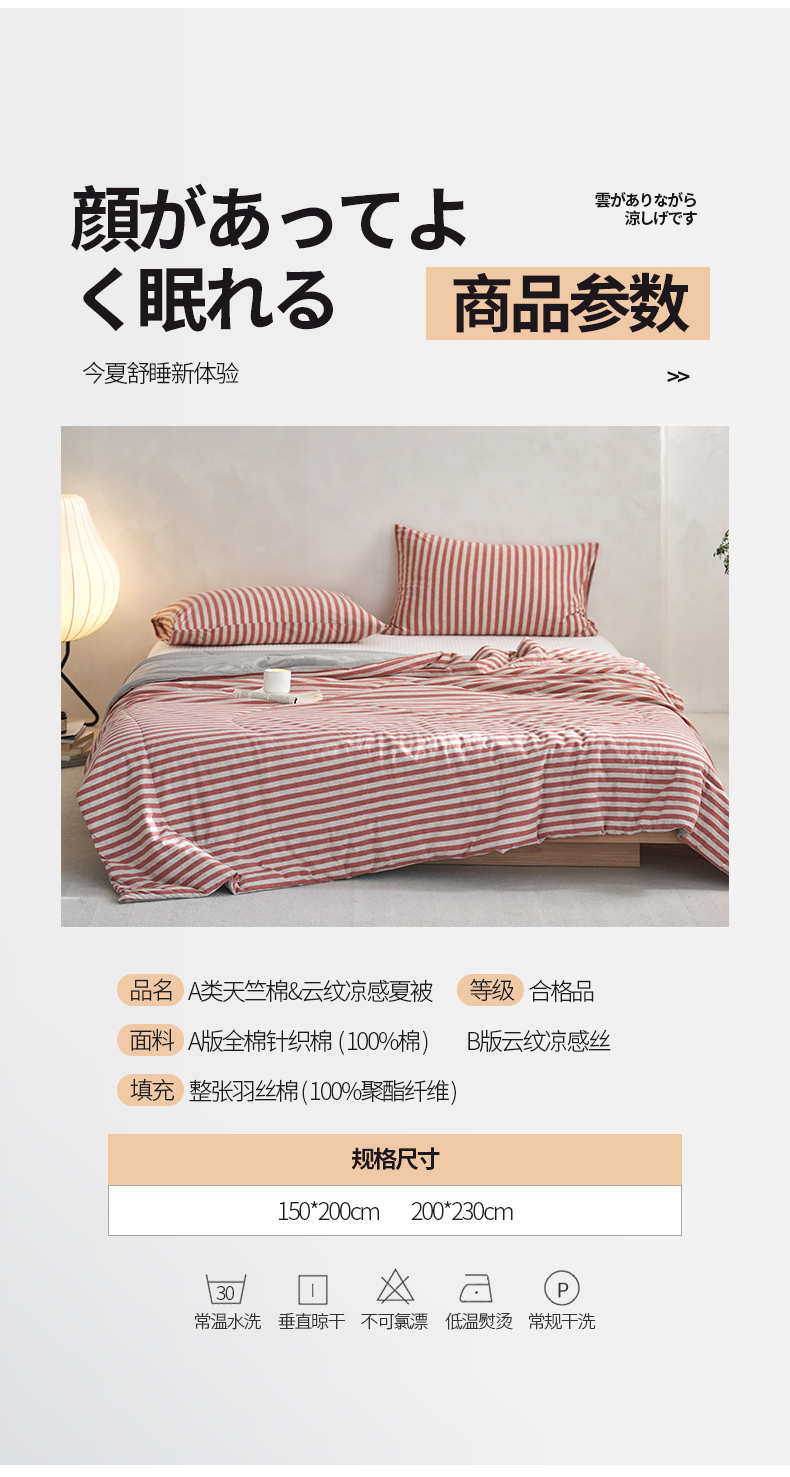 商品名称:莱宁被业 2024新款A类全棉天竺棉云纹凉感丝夏被 棕红中条