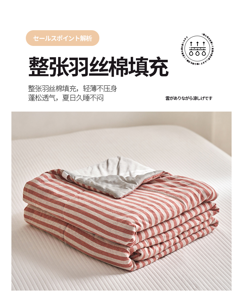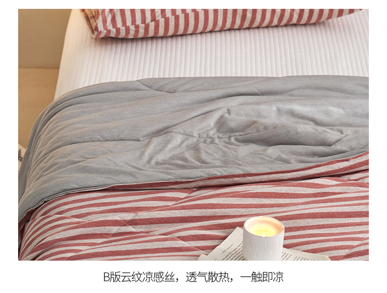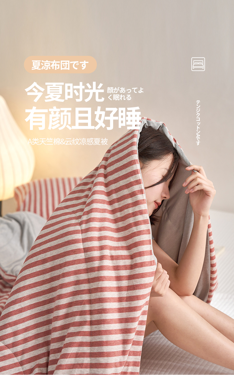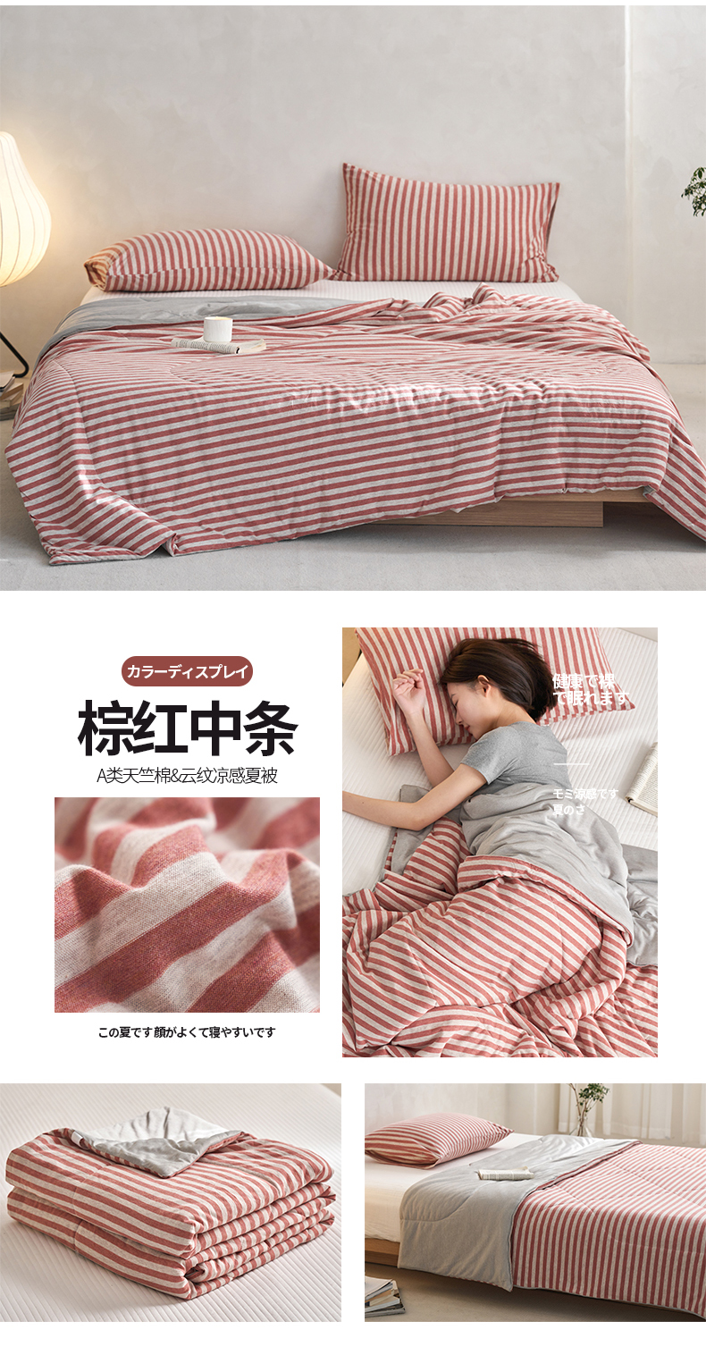莱宁被业 2024新款A类全棉天竺棉云纹凉感丝夏被 棕红中条