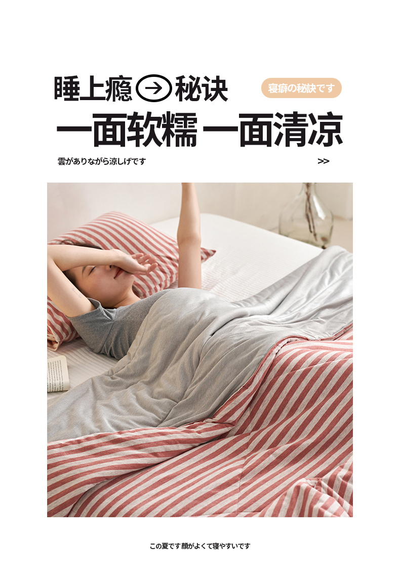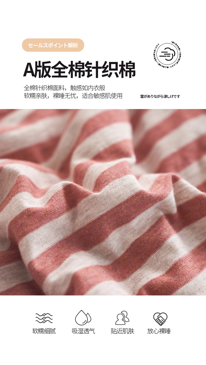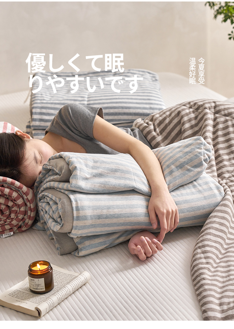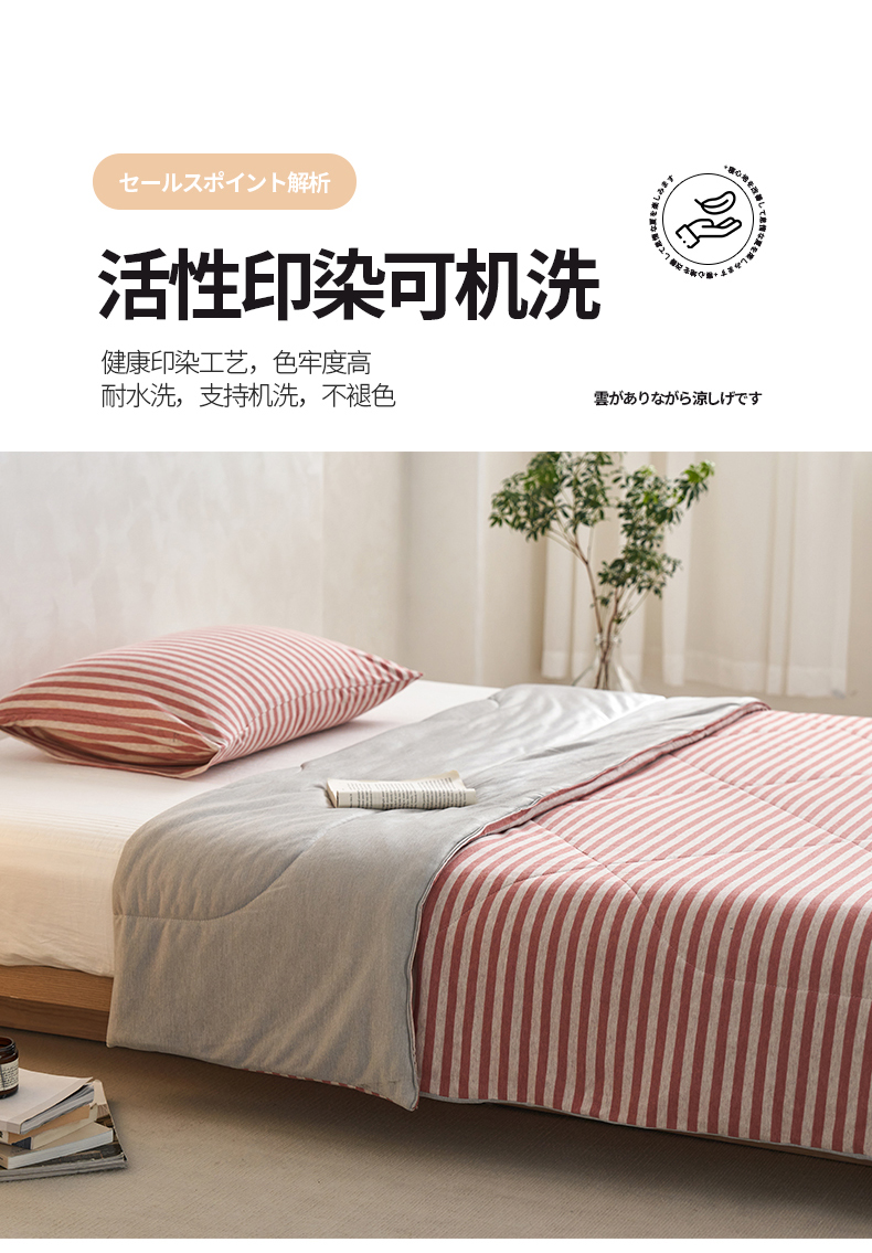莱宁被业 2024新款A类全棉天竺棉云纹凉感丝夏被 棕红中条