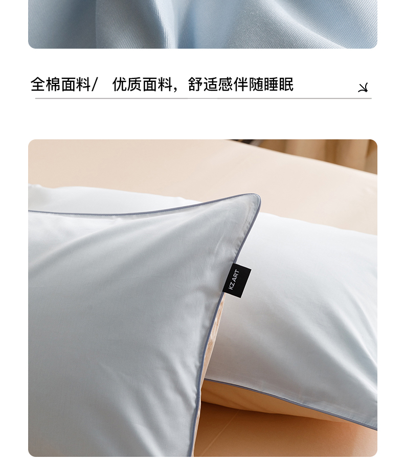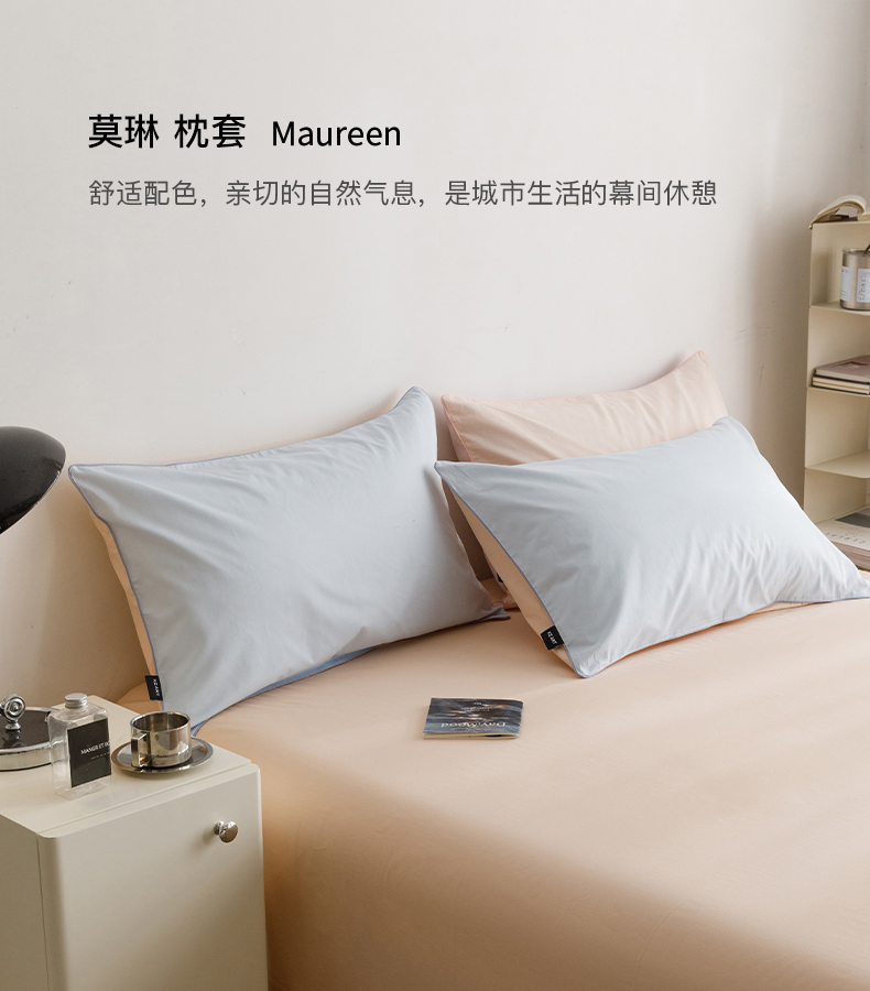 商品名称:卡姿家纺 2024春夏纯色双拼嵌绳款单枕套—莫琳 莫琳 枕套蓝杏