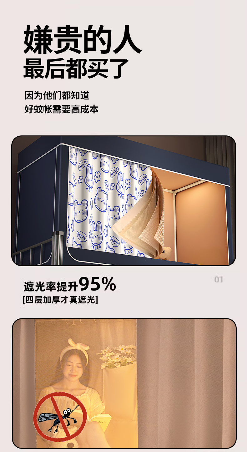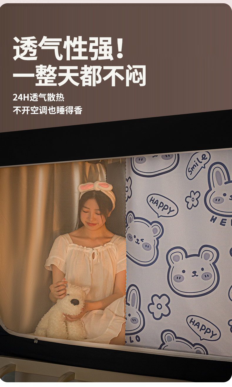 商品名称:青竹苑 2024新款涂银强遮光学生蚊帐上下铺坐床蚊帐 笨笨熊