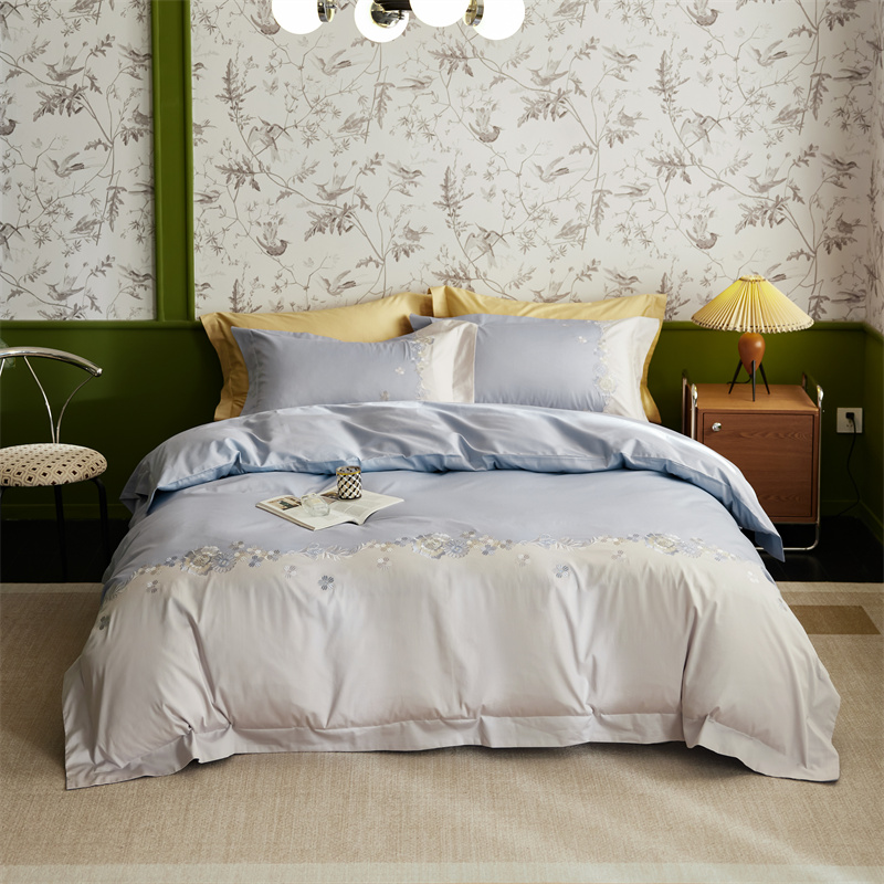 (总)云胡 2024新款50支长绒棉宽边工艺刺绣四件套-兰茵