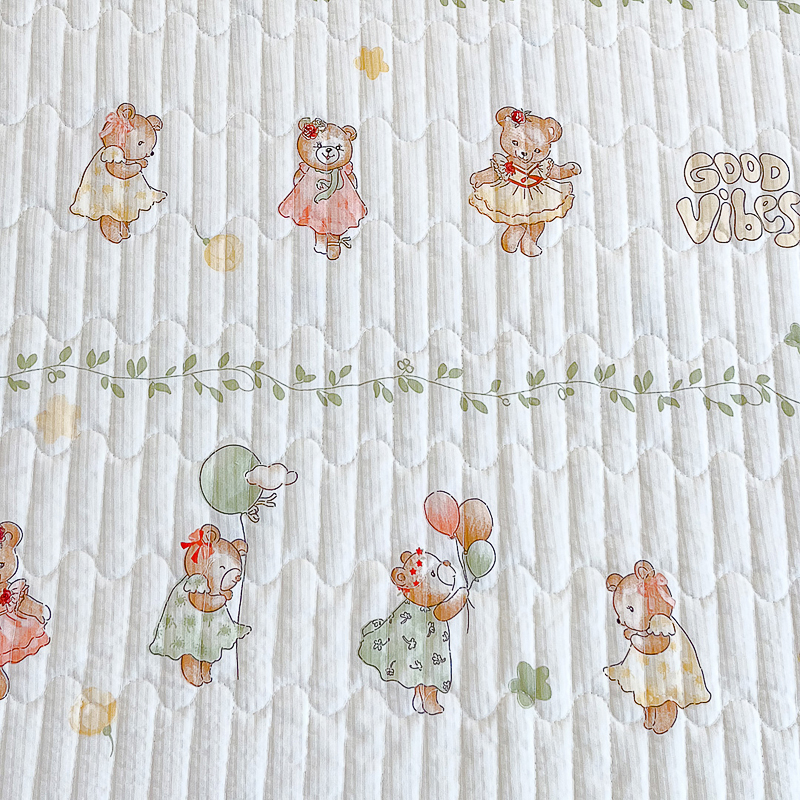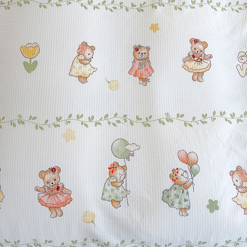 商品名称:2024直播爆款泡泡棉床盖款四件套双层蕾丝花边夹棉床裙款三件套 小熊派对