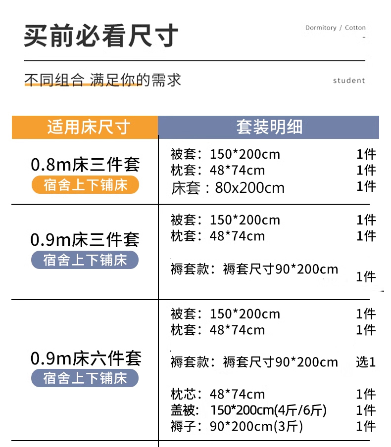 0.9米床套款-六件套(含6斤被芯) | ¥221.00 |