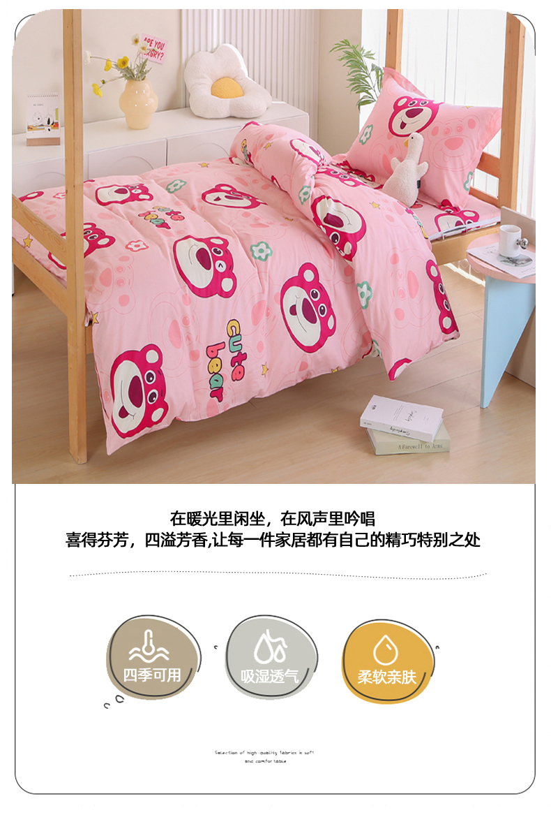 (总)凯森2024新款133x72全棉三件套纯棉学生床笠宿舍被套上下铺寝室六件套
