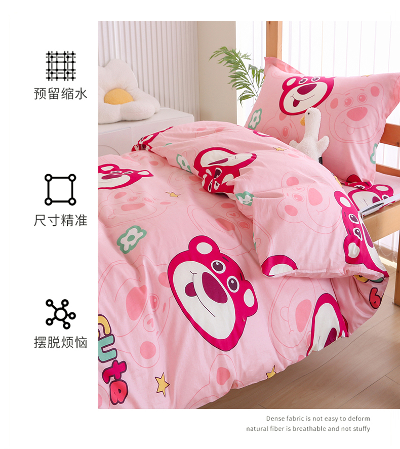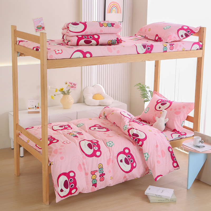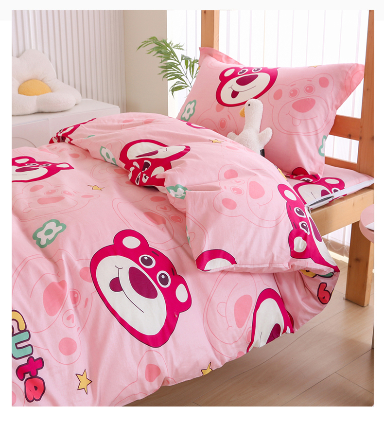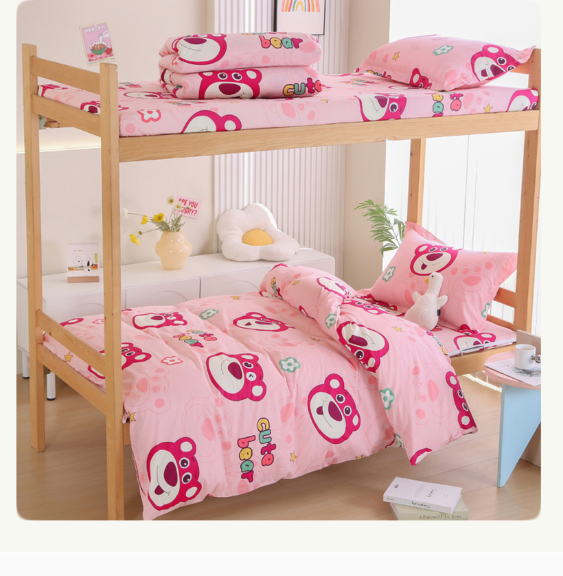 当前位置: 91家纺网 > 商品网购 > 床品套件 > 三件套 > 凯森2024新款133x72全棉三件套纯棉学生床笠宿舍被套上下铺寝室六件套 草莓熊