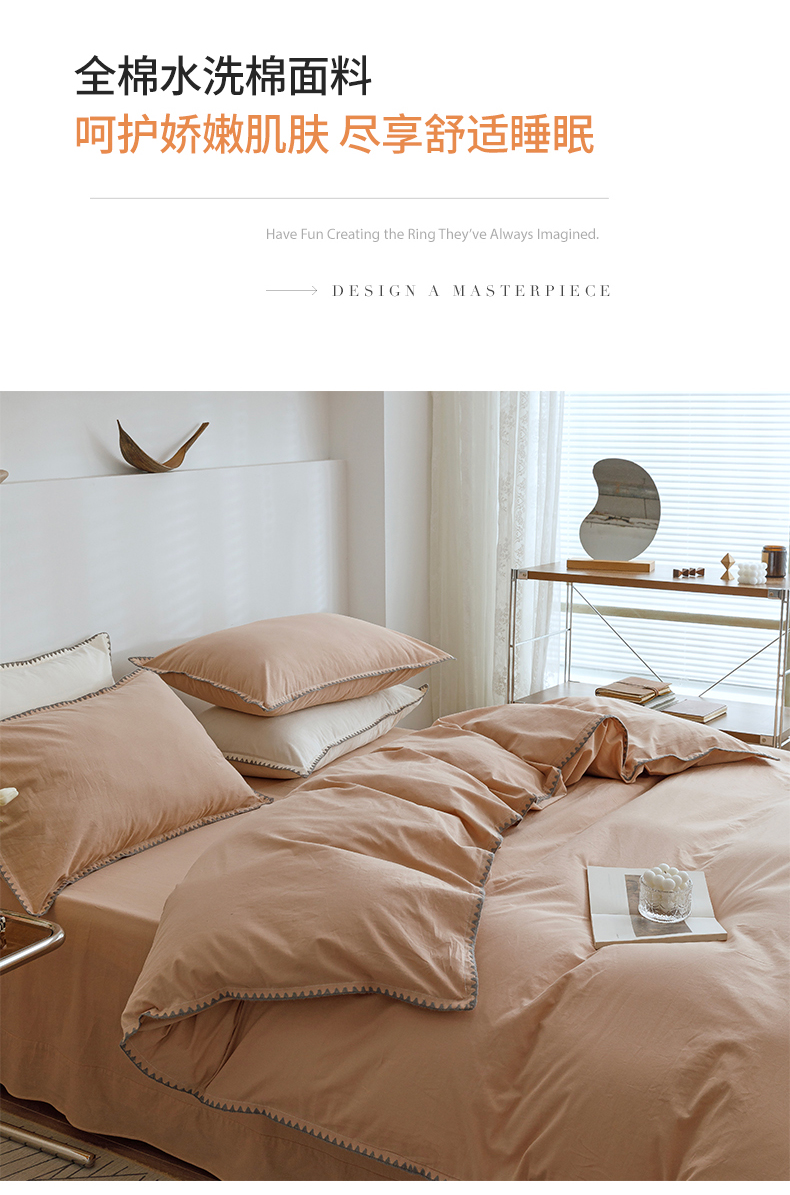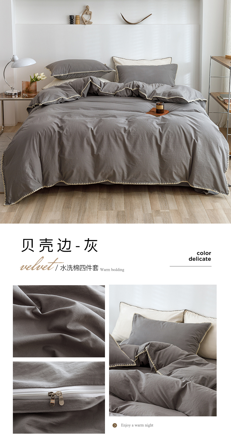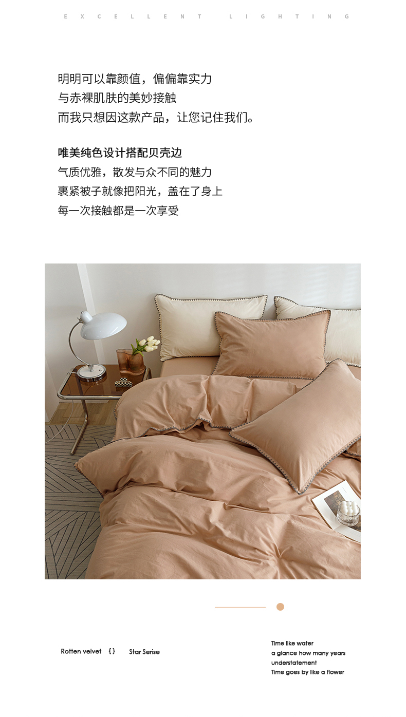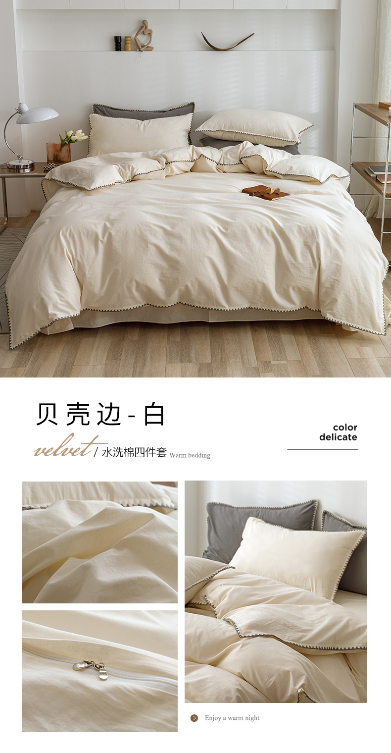 当前位置: 91家纺网 > 商品网购 > 床品套件 > 四件套 > 水洗棉四件套 > 莱茵2024新款A类全棉纯棉40s色织水洗棉条纹贝壳边日系四件套-水洗棉贝壳边咖