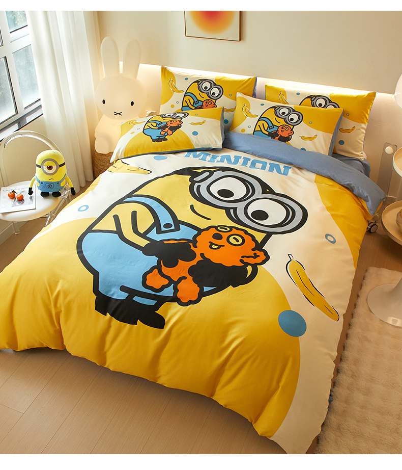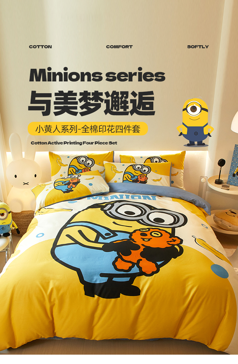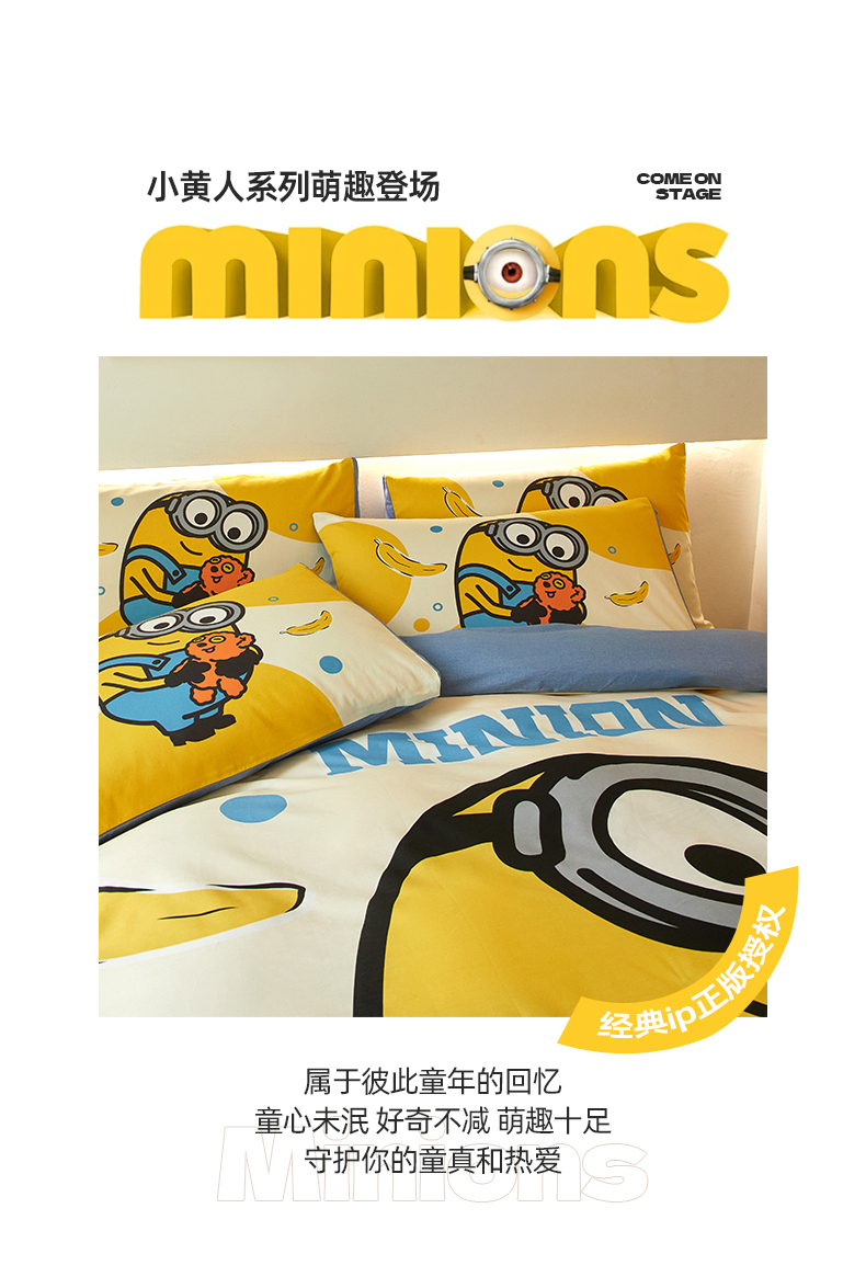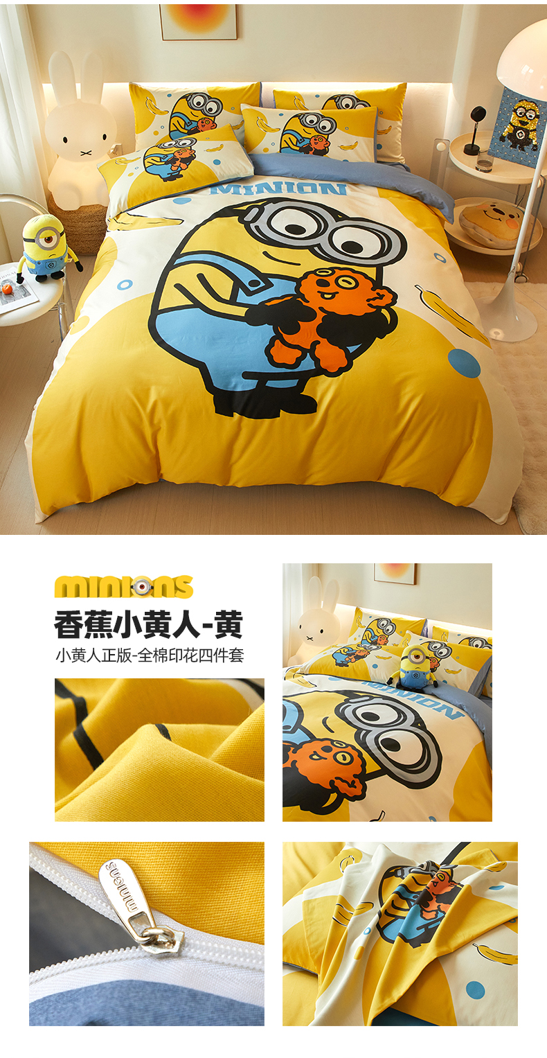 当前位置: 91家纺网 > 商品网购 > 床品套件 > 四件套 > 全棉活性四件套 > 鑫帝家居 2025新款全棉活性印花四件套---小黄人系列 香蕉小黄人-黄