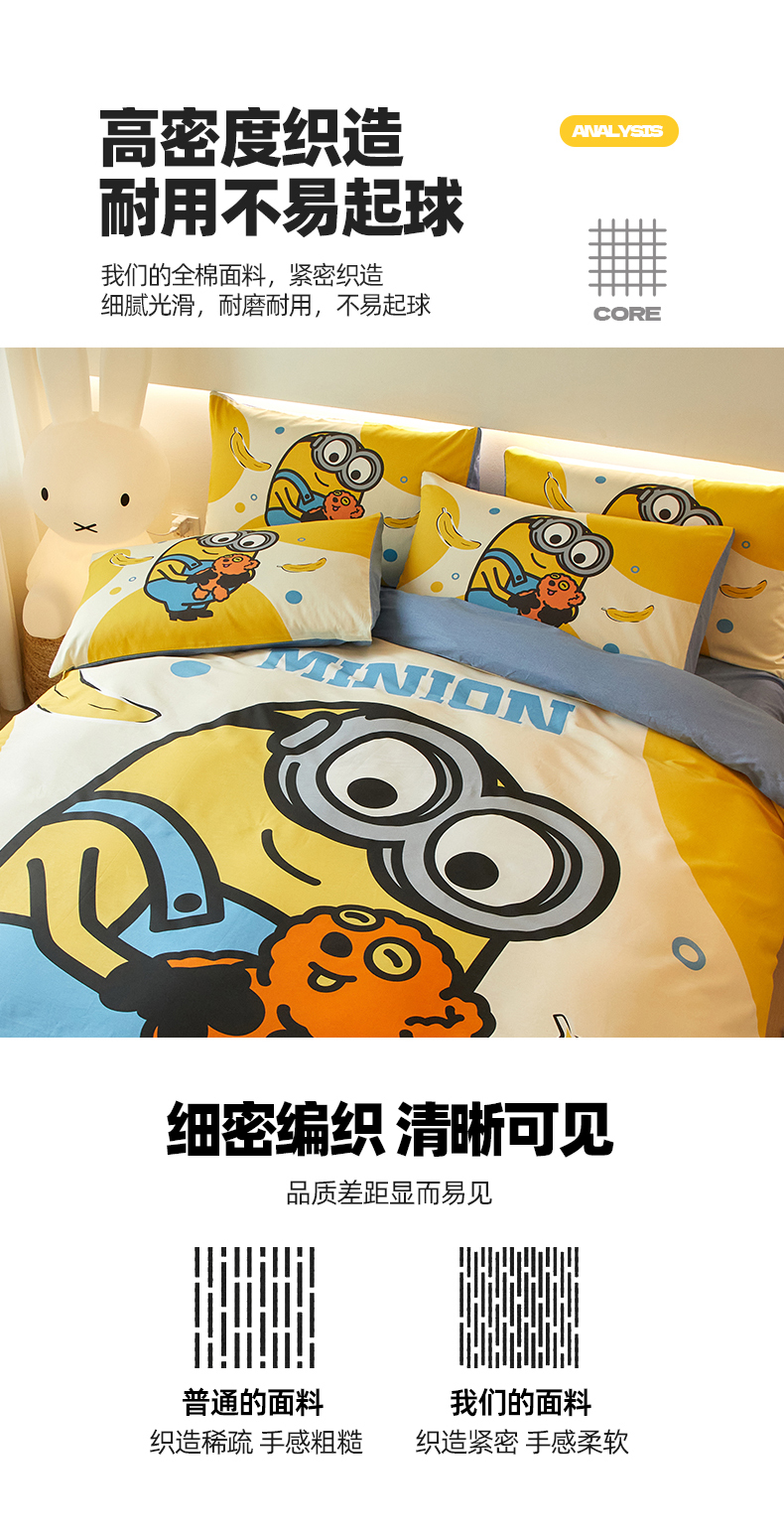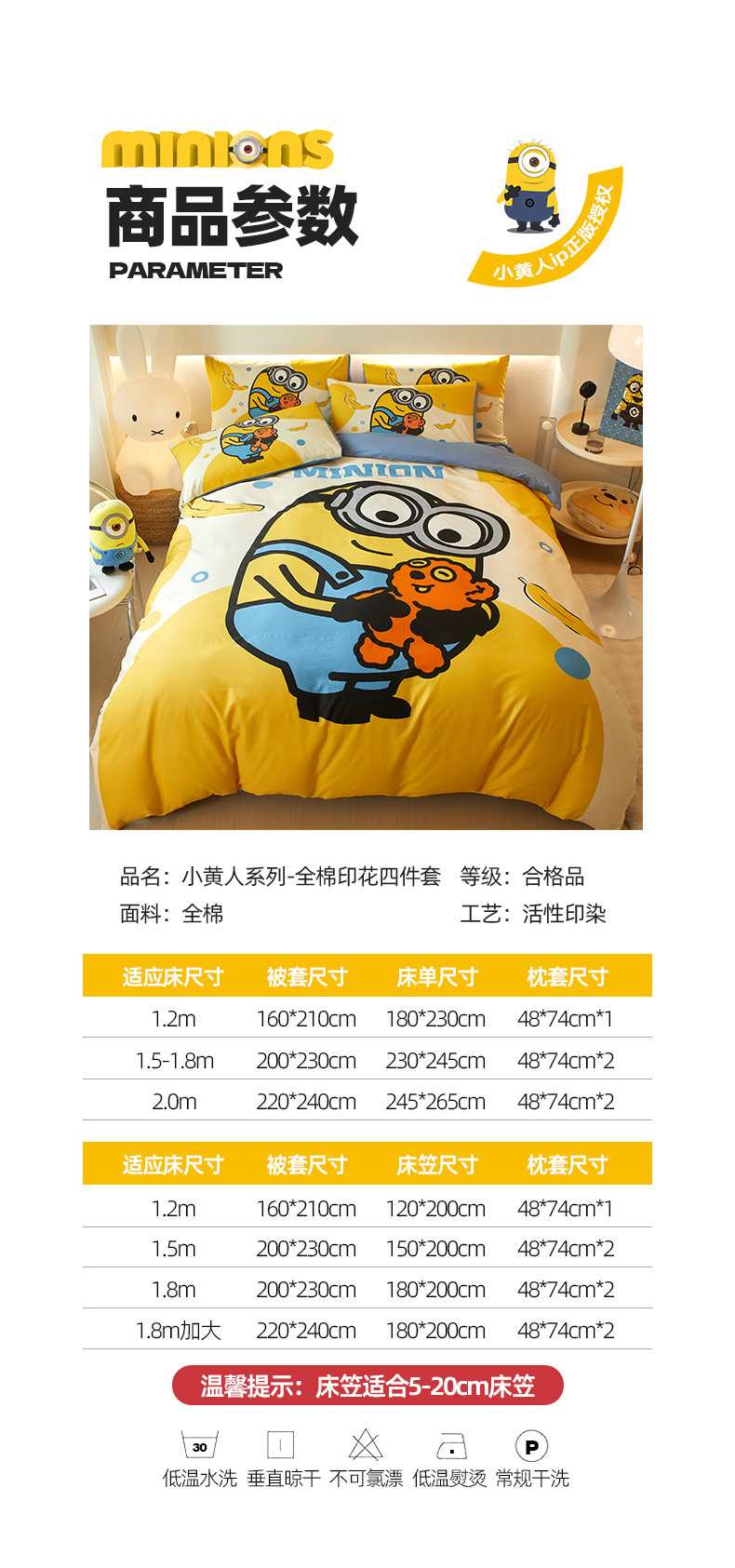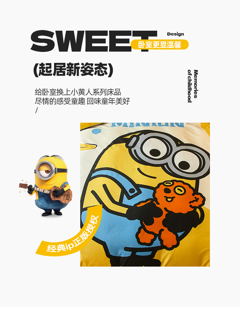 当前位置: 91家纺网 > 商品网购 > 床品套件 > 四件套 > 全棉活性四件套 > 鑫帝家居 2025新款全棉活性印花四件套---小黄人系列 香蕉小黄人-黄