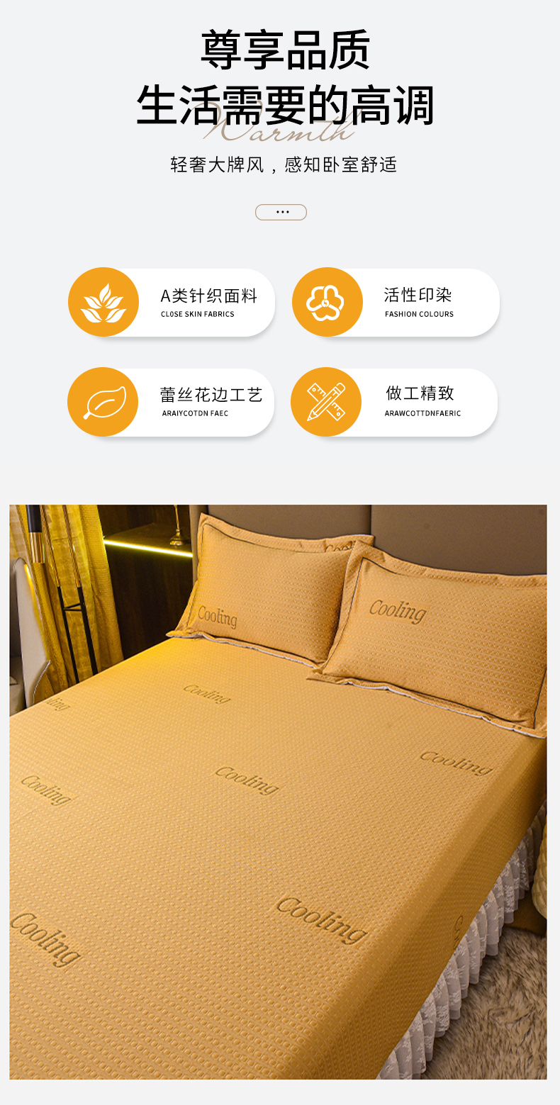 商品名称:艾迪尚家纺 2025新款A类婴幼级蕾丝花边豆豆软凉席 杏黄