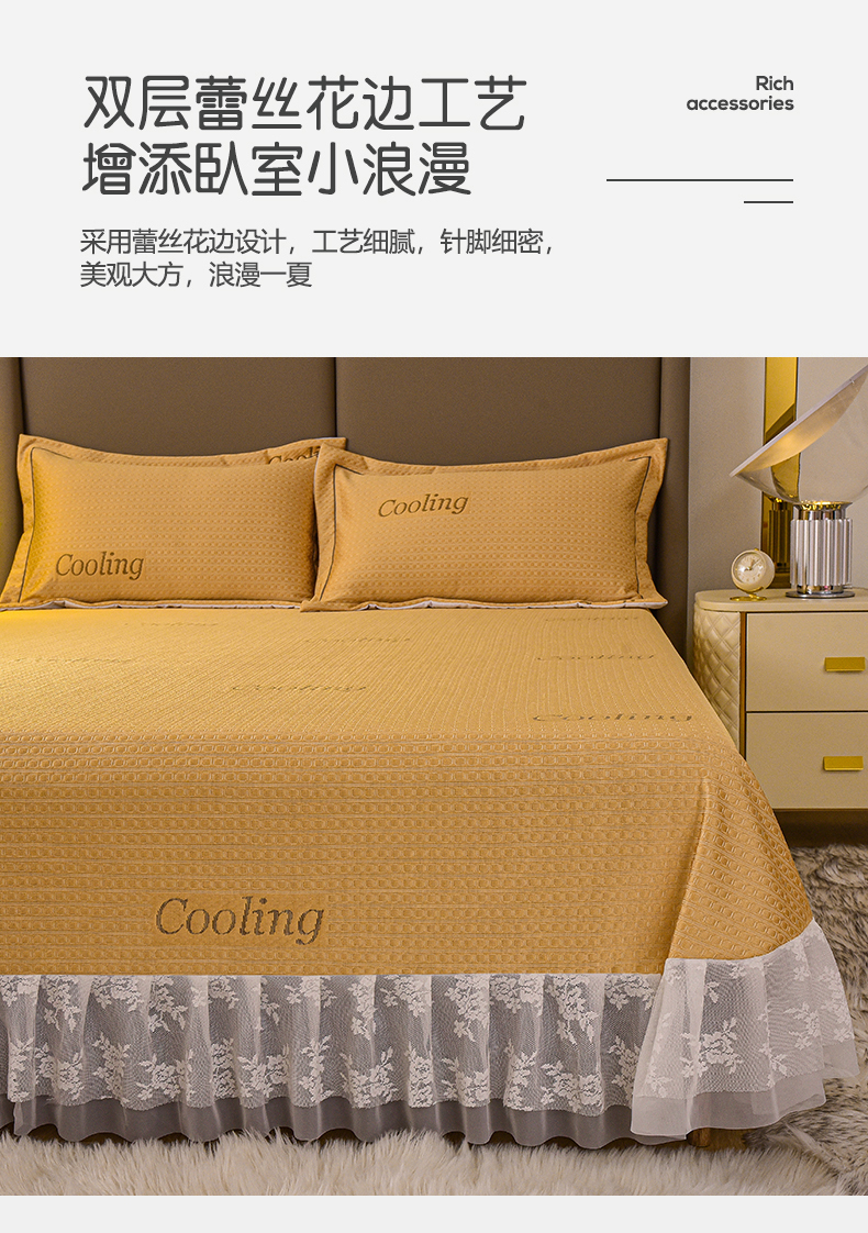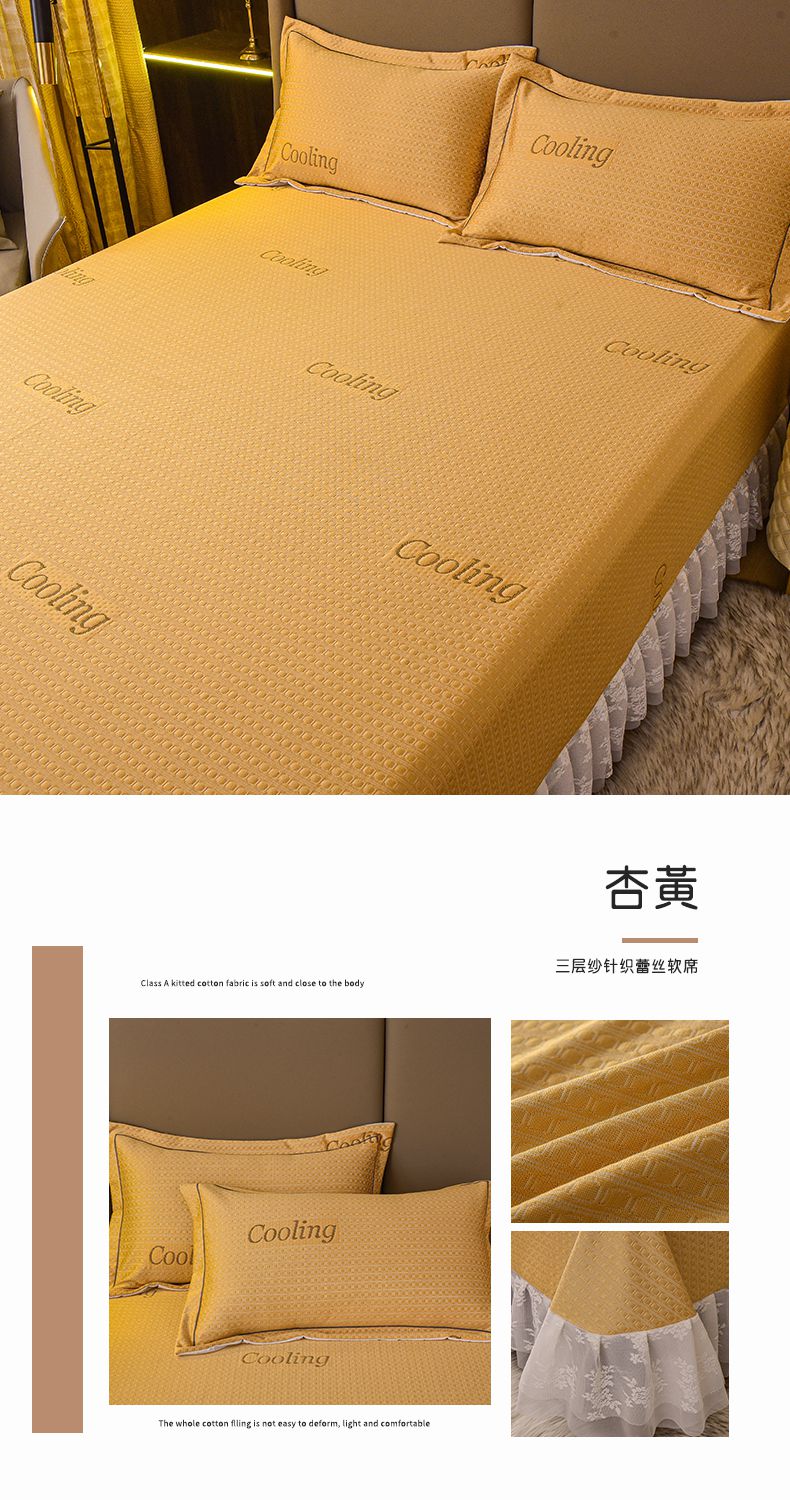 艾迪尚家纺 2025新款A类婴幼级蕾丝花边豆豆软凉席 杏黄