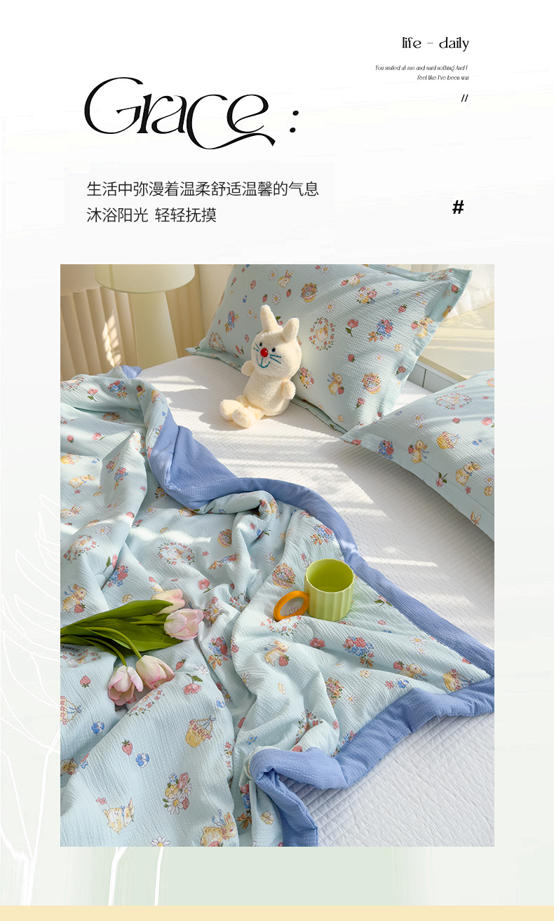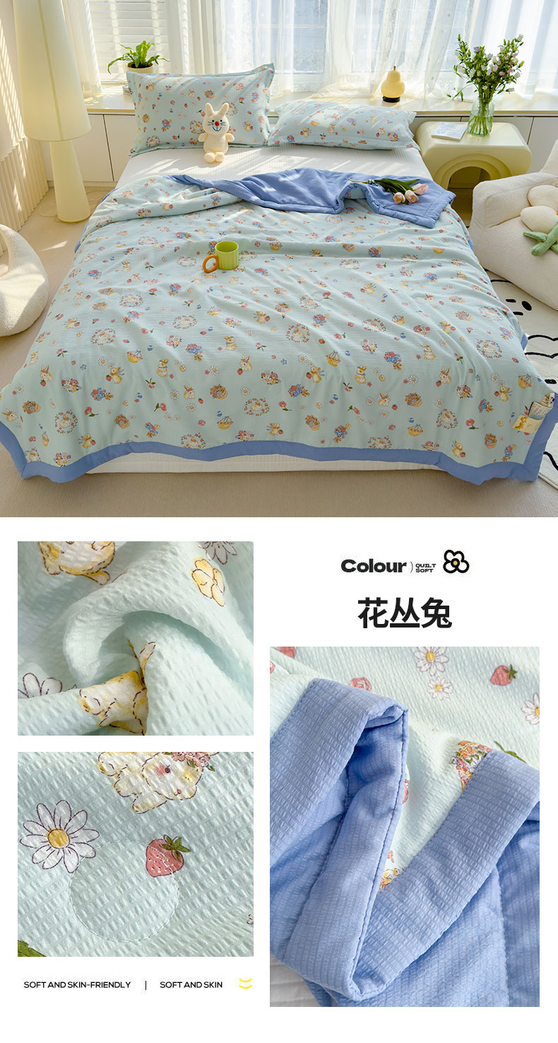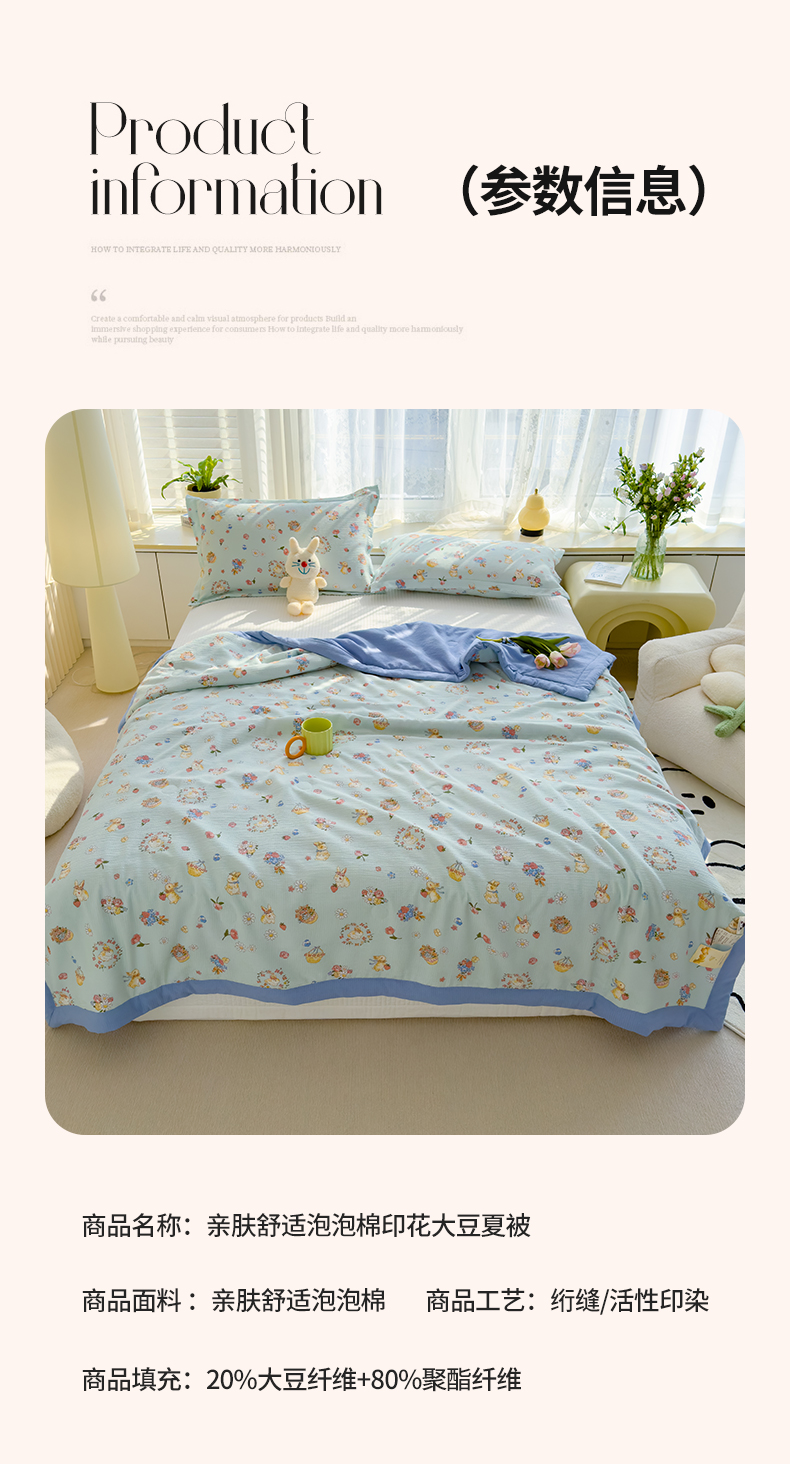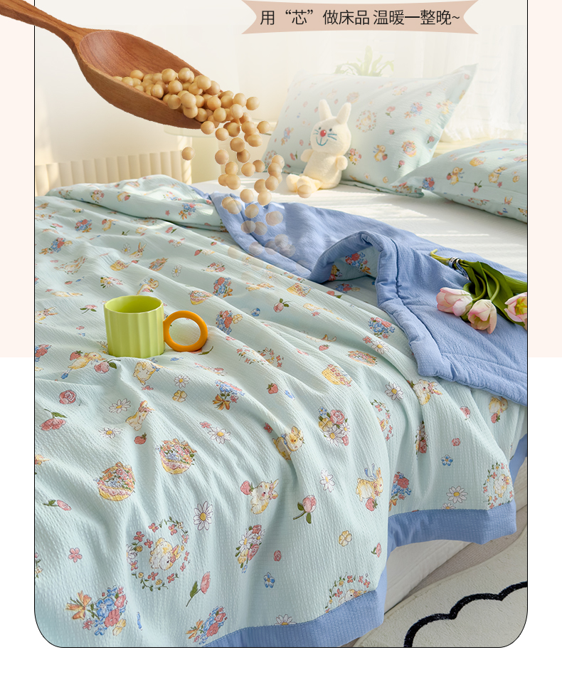 商品名称:蓝冰家纺 2024新款亲肤舒适泡泡棉印花夏被 花丛兔