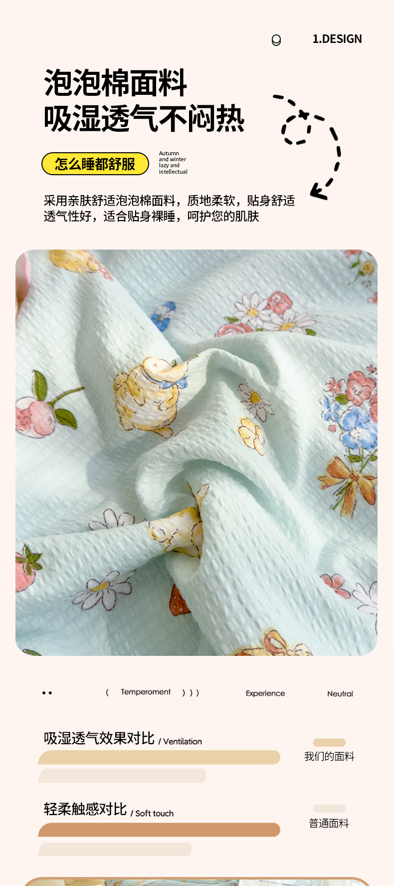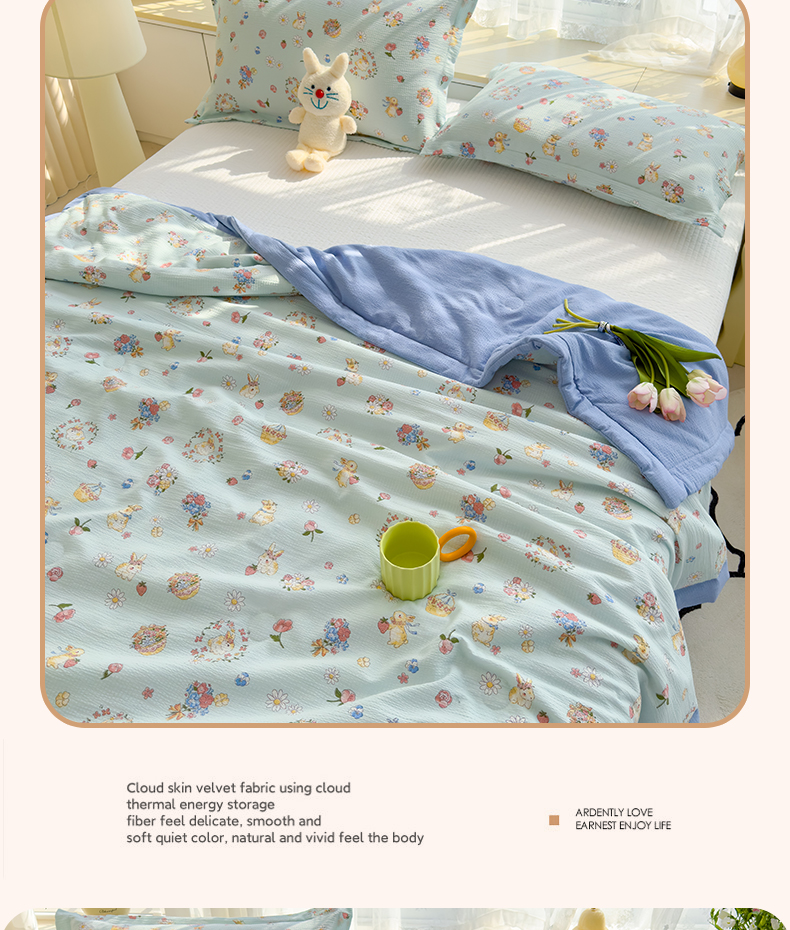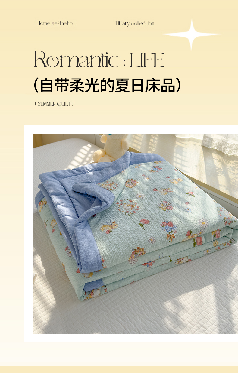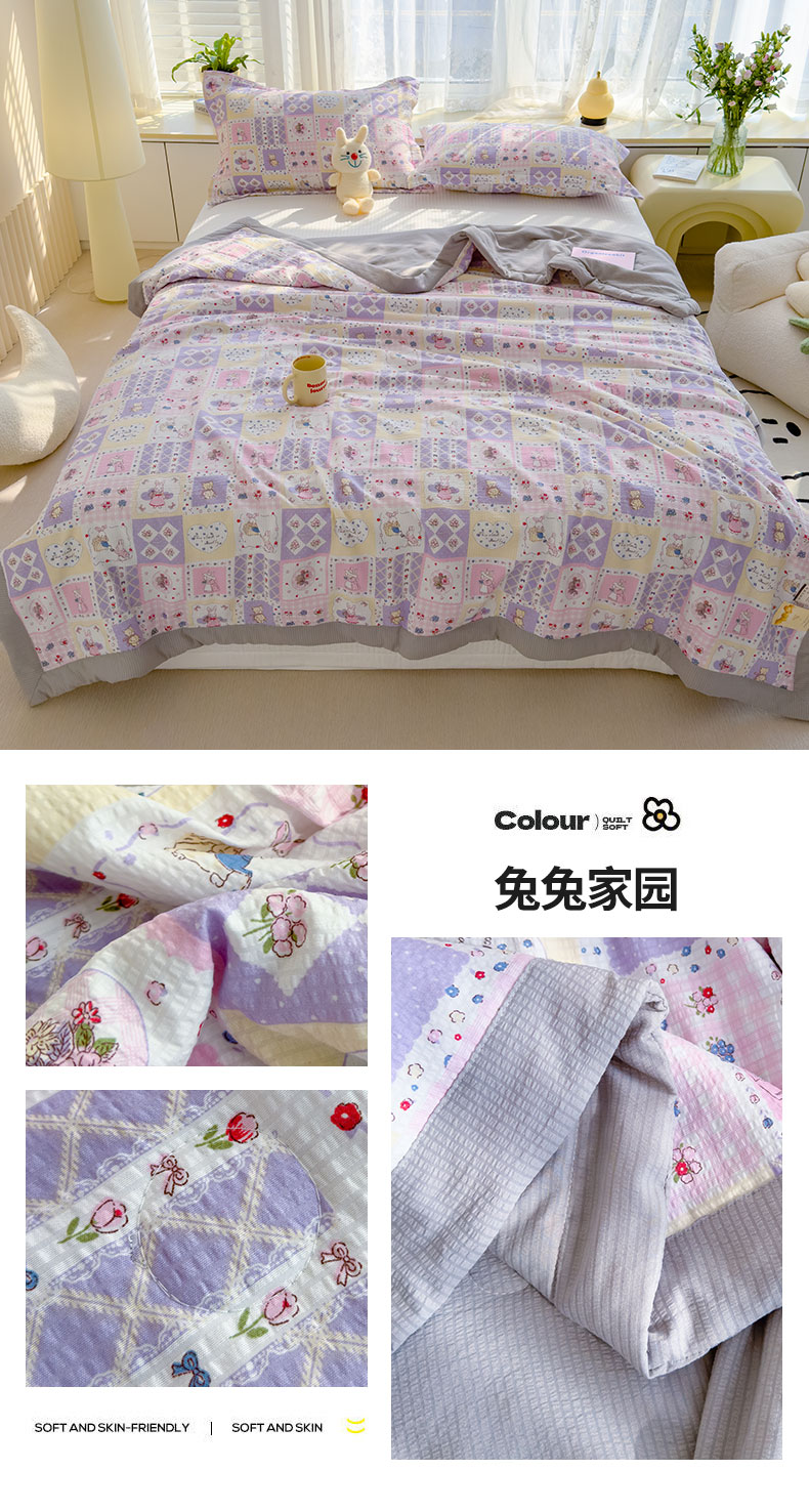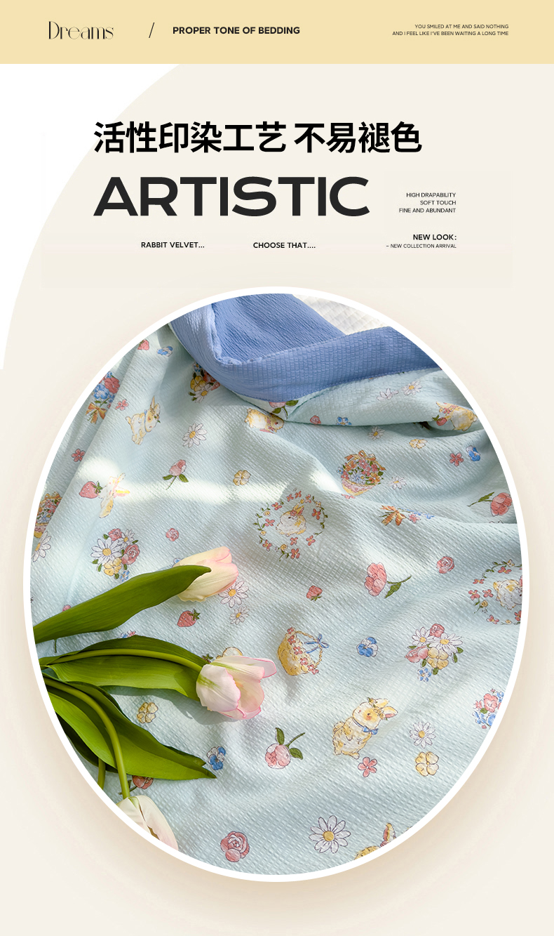 商品名称:蓝冰家纺 2024新款亲肤舒适泡泡棉印花夏被 花丛兔