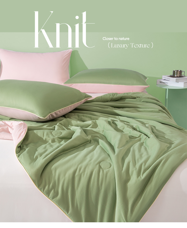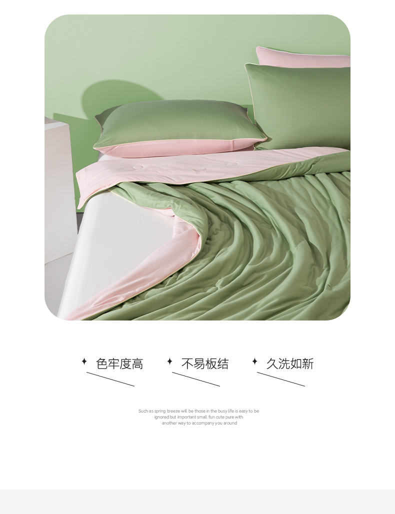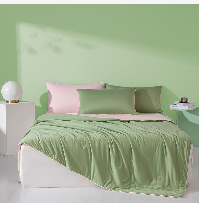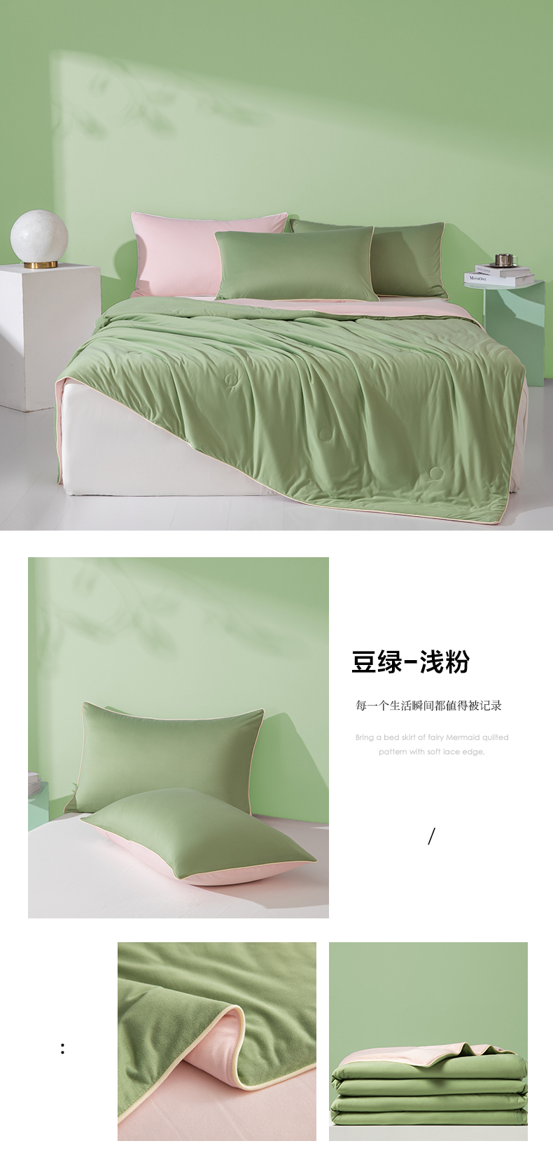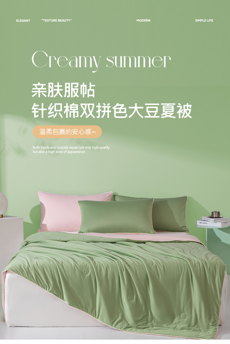 商品名称:吾诺家居 2024新款针织棉双拼色大豆夏被 豆绿-浅粉